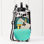 Introducing Swig's Howdy Yall Water Bottle Bag, designed for adventure with a fun pink and orange rock star theme. Stay hydrated in style with the zippered pocket, featuring credit card slots and space for your essentials. Perfect for walks or events. 36oz Water Bottle sold separately.