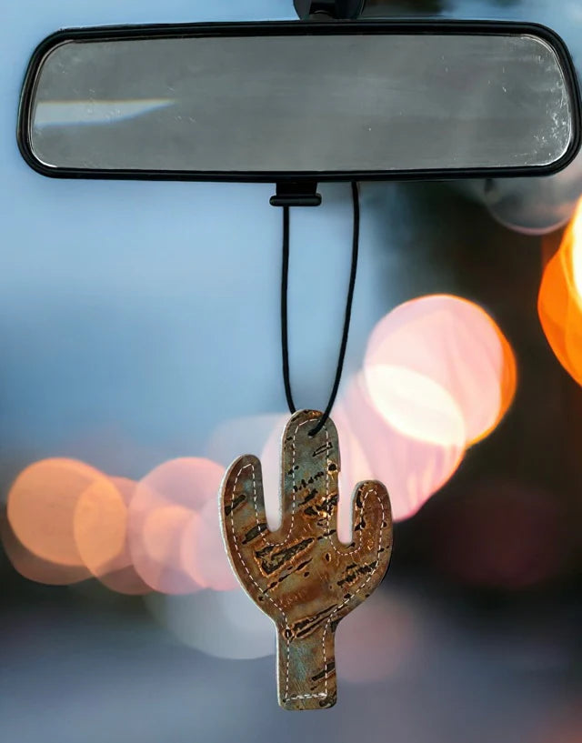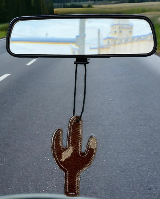 Add a fun, southwestern touch to your space with the Cactus Shape ReSCENTit Car Freshener. Crafted from genuine hair-on-hide and leather, this stitched charm combines unique style with refreshing fragrance. Hang it from your rear-view mirror, place it under a seat, or display it in your home—wherever you want a burst of scent. Simply refresh with 1–2 mists of our specially formulated scented oils and enjoy. Easily swap scents with the same charm, saving you money while keeping your surroundings smelling great. ReSCENTit, don’t replace it!