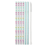 Includes 4 printed straws, 2 solid color straws, and 1 cleaning brush, all made of BPA-free plastic.