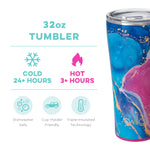 Indulge in berry bliss! 💯 Swig's 32oz Tumbler steals the show with swirls of dazzling purples, bright blues, and dazzling gold. Its slim profile makes it the ultimate companion, fitting perfectly in cup holders and comfy to hold. Plus, with a 32oz capacity, you can enjoy more of your favorite drinks with fewer refills! Keep it cold for 24+ hours and hot for 3+ hours with triple insulation technology. Condensation-free and nonbreakable, it's crafted with 5mm 304-18/8 stainless steel and a slip-free, scratch-free and noise-free silicone base. Plus, it comes with an X-Large BPA-free lid with a removable slider for easy cleaning.