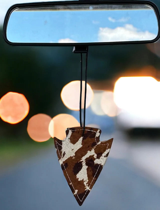 Beaded Wooden Scoop with Embossed Leather and Cowhide