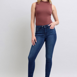 Indulge in luxury with the Judy Blue Midrise Skinny jeans. The perfect balance of sophistication and comfort, these jeans feature a midrise waist for a flattering fit, a sleek skinny silhouette, and a raw hemline for a touch of edge. Elevate your denim game with these exclusive jeans.