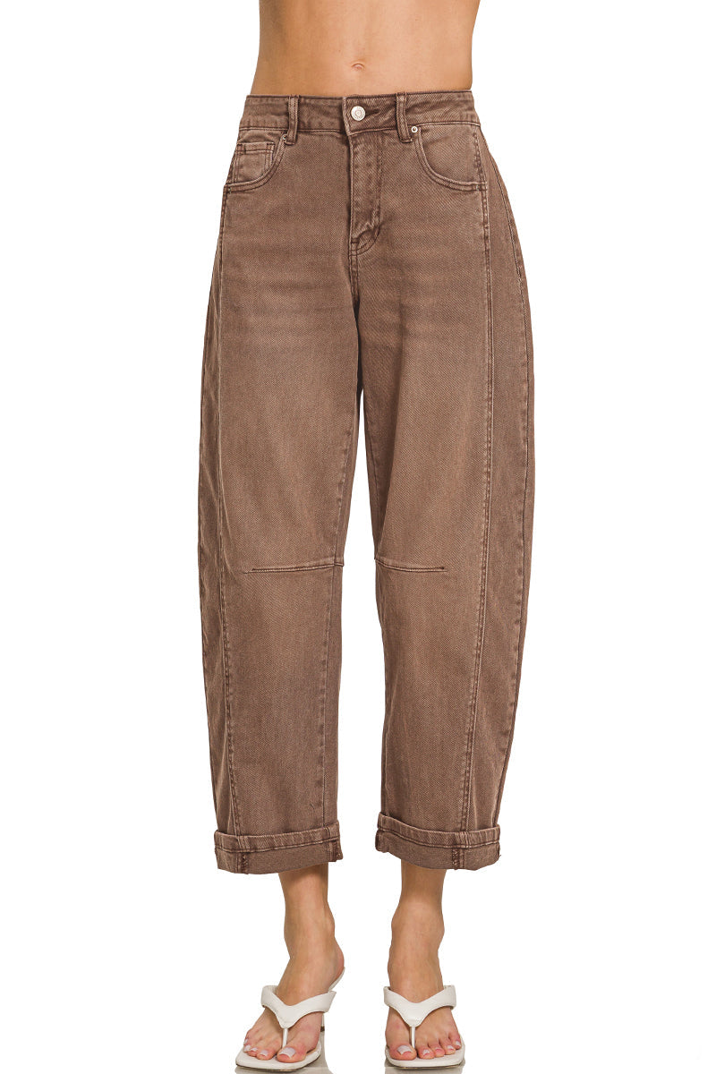 Brown Cropped Barrel Pants