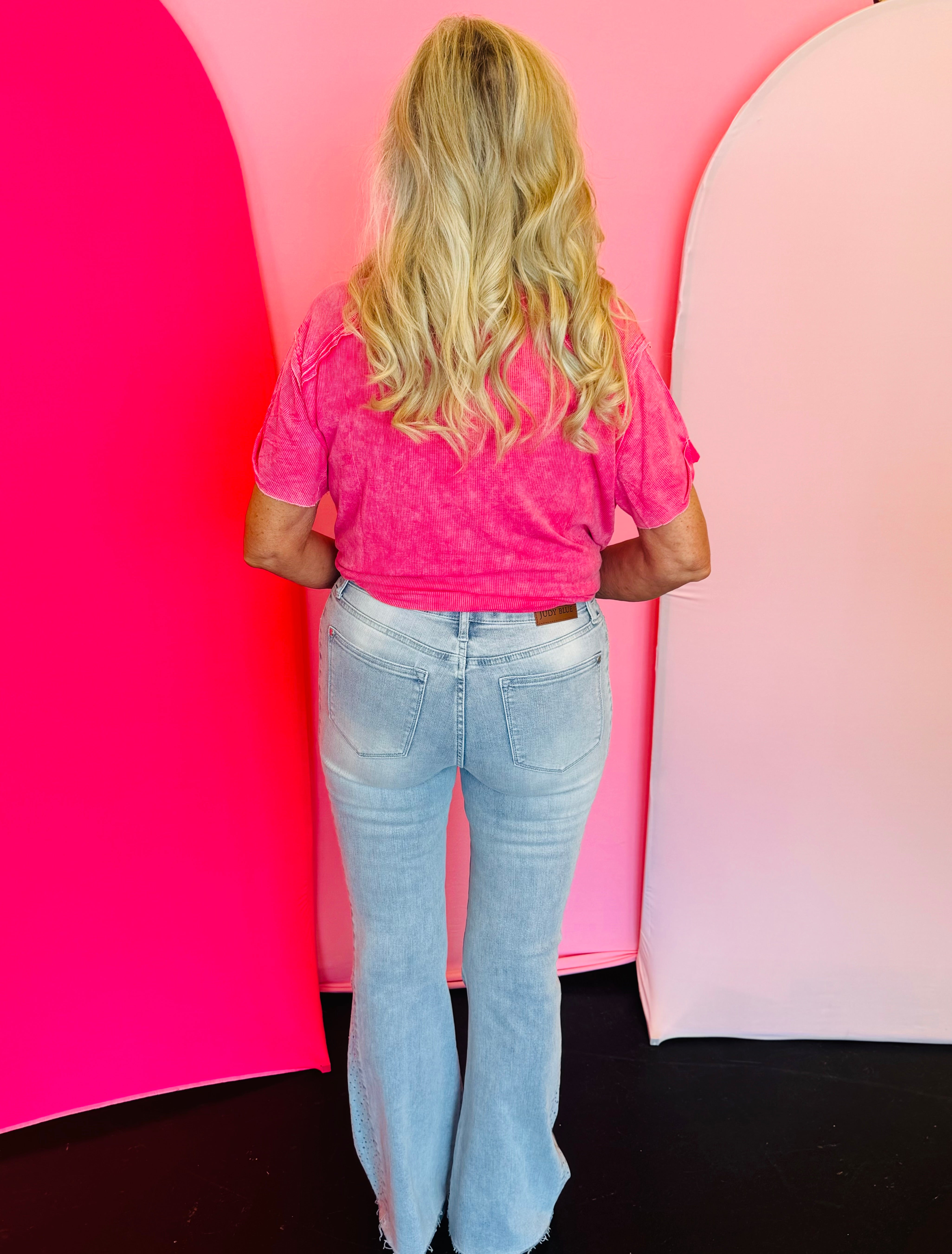 Add these dazzling Judy Blue flare jeans to your wardrobe and bring sparkle to every step!