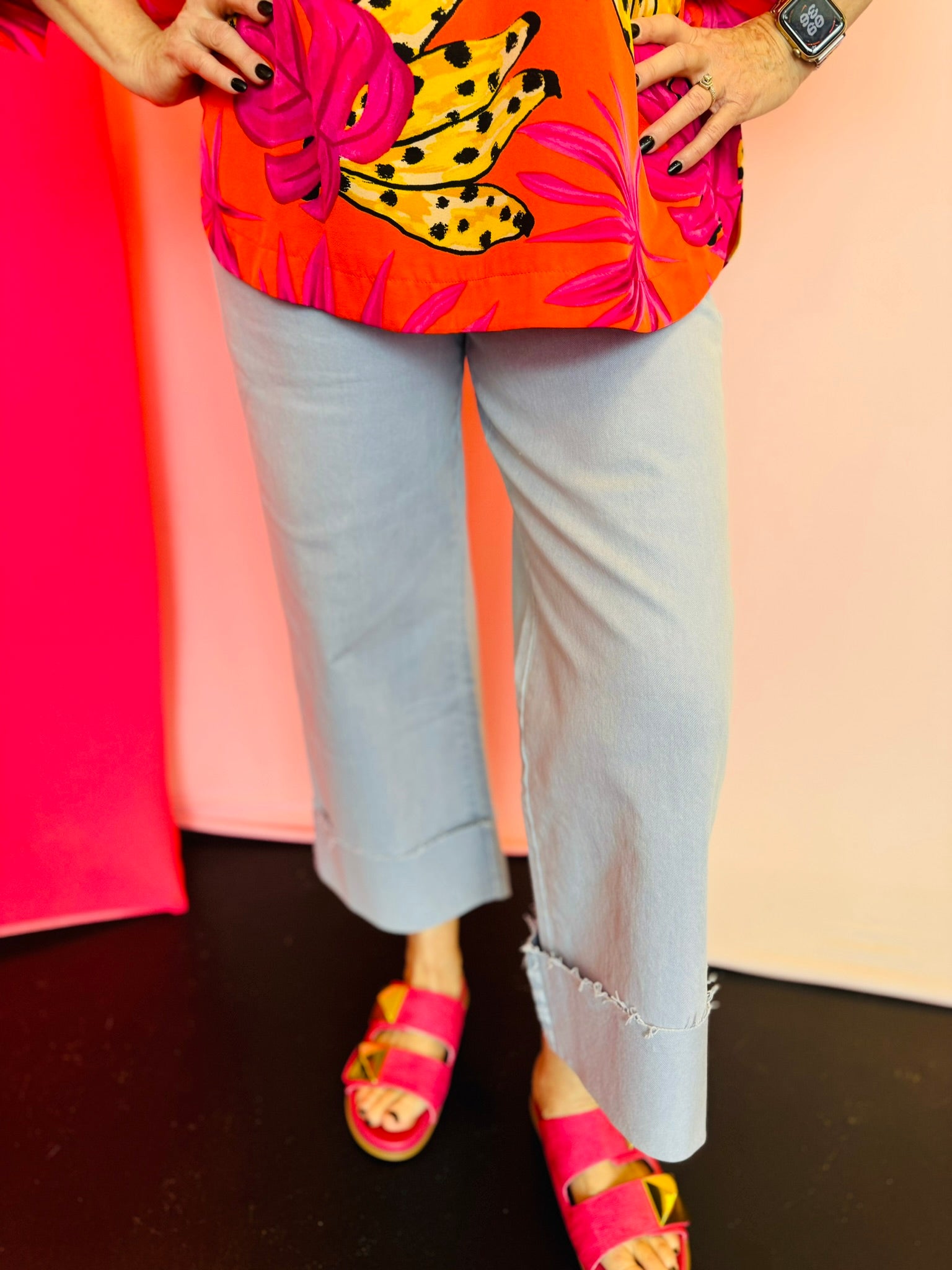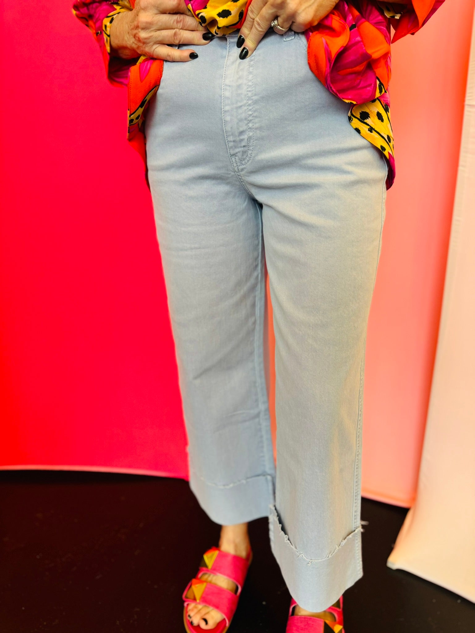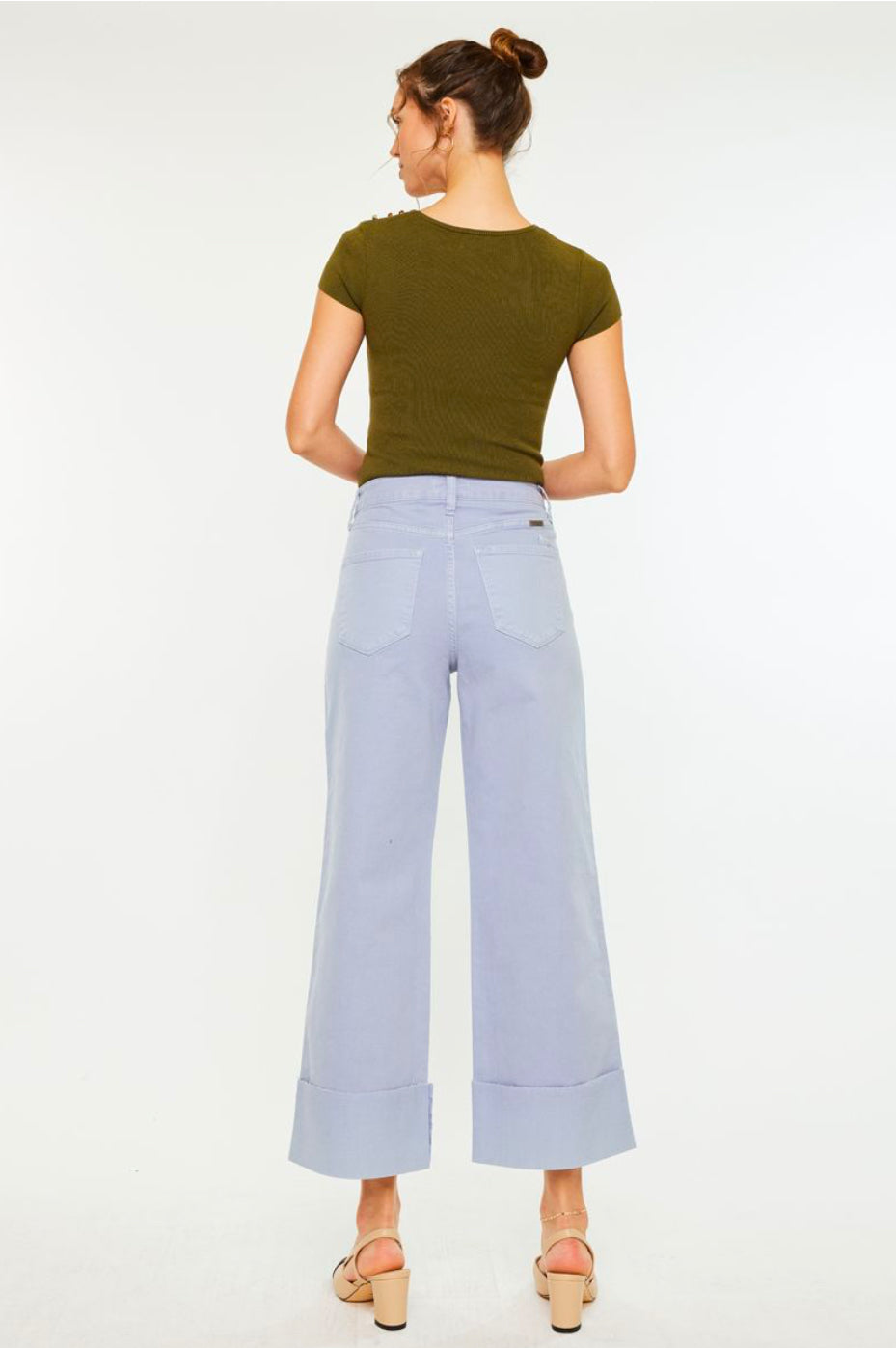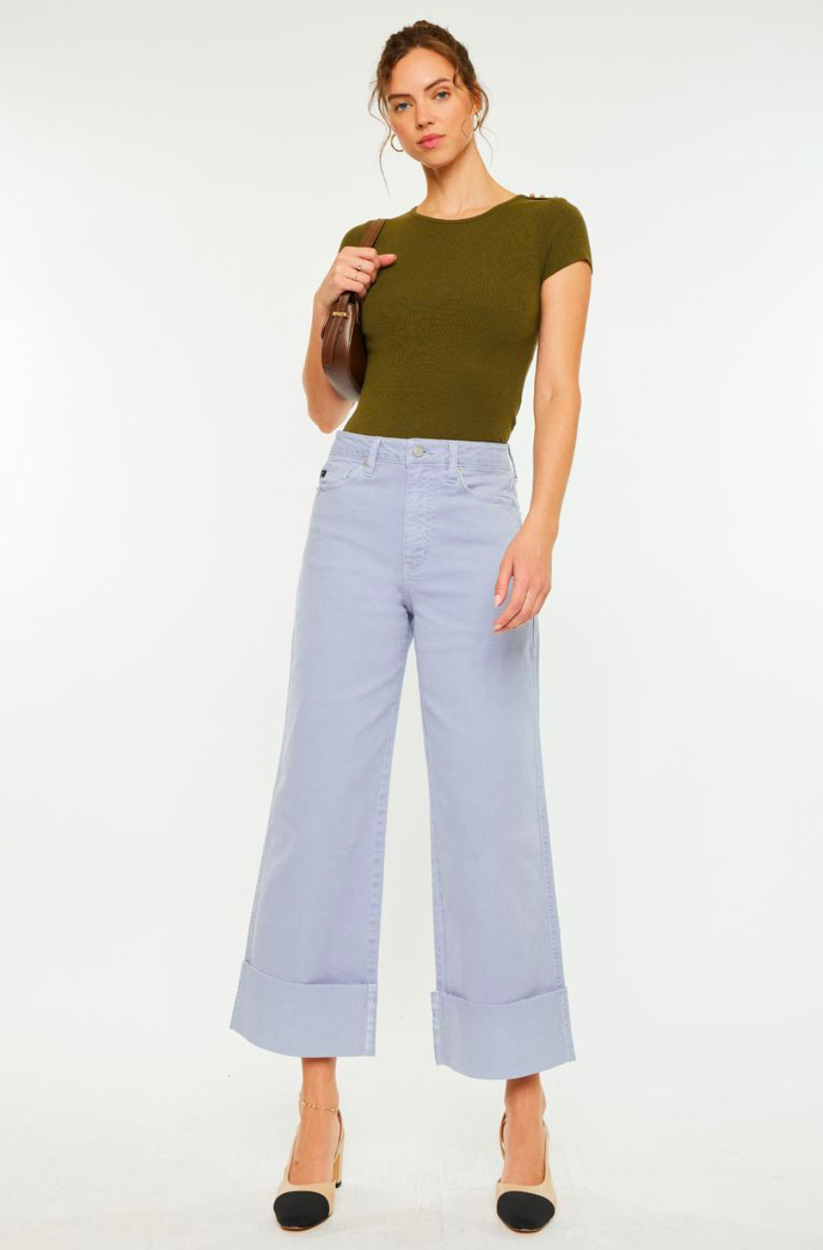 Elevate your wardrobe with KanCan Lavender Ultra Rise 90’s Jeans. Experience the nostalgia of the 90's with an ultra high rise and cropped wide leg, complete with an oversized cuff. Made with no stretch, these jeans offer a unique and comfortable fit for any occasion.