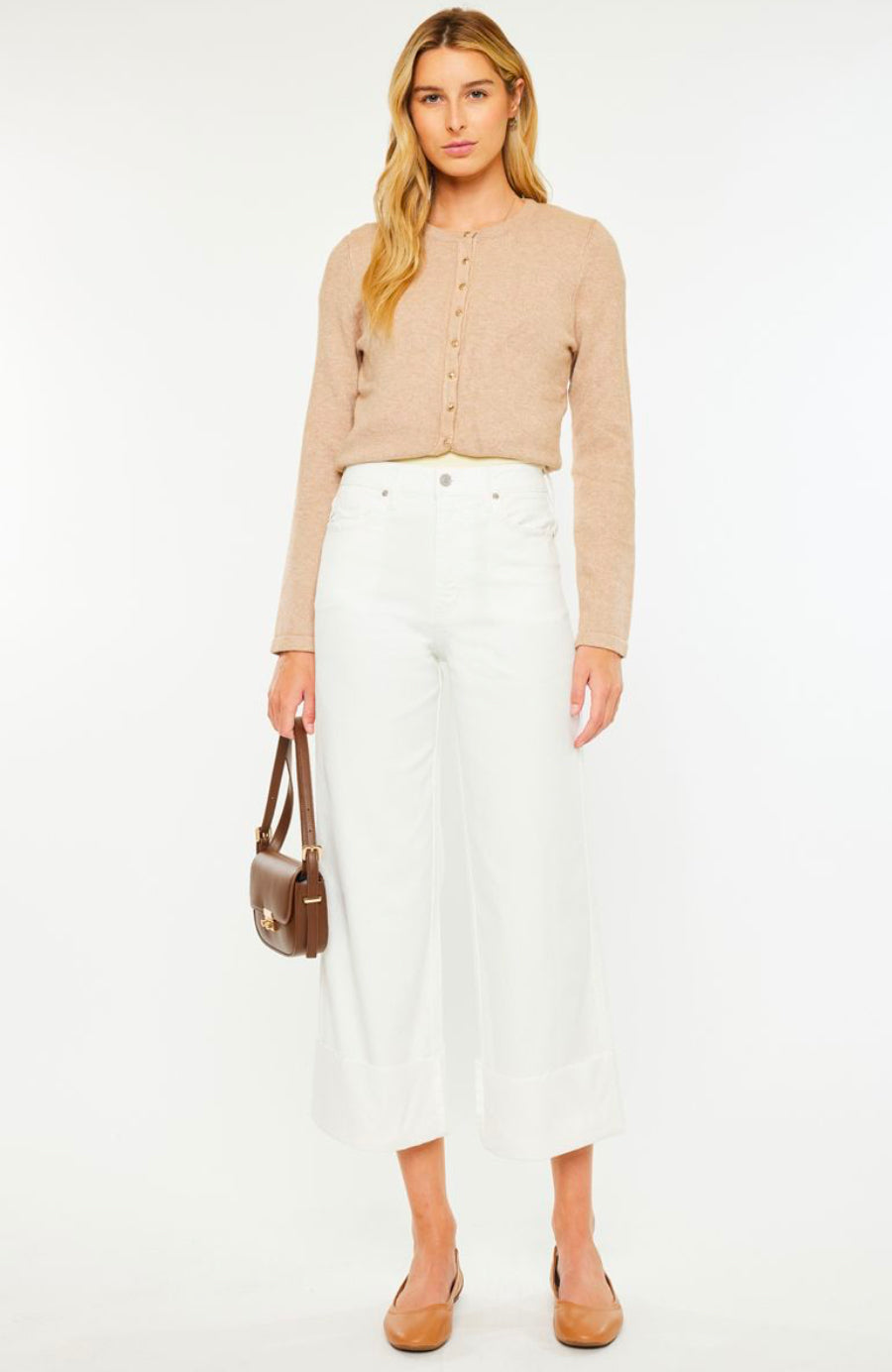 Revive the iconic 90's look with KanCan Ultra Rise 90's Jeans. The ultra high rise offers a flattering fit while the cropped wide leg and oversized cuff add a unique touch. The no-stretch fabric provides a structured silhouette for a vintage appeal. Embrace your inner trendsetter with these statement jeans!
