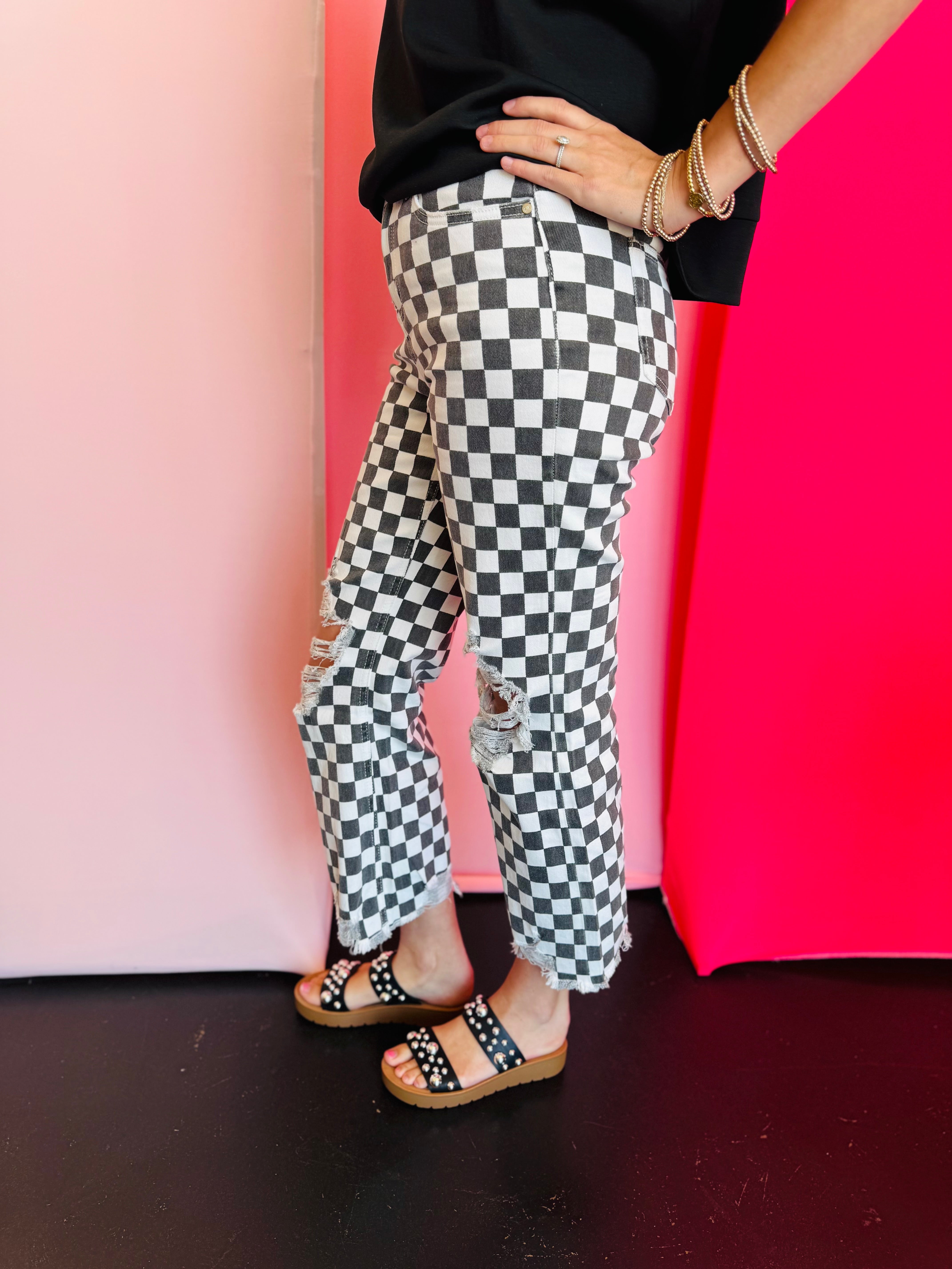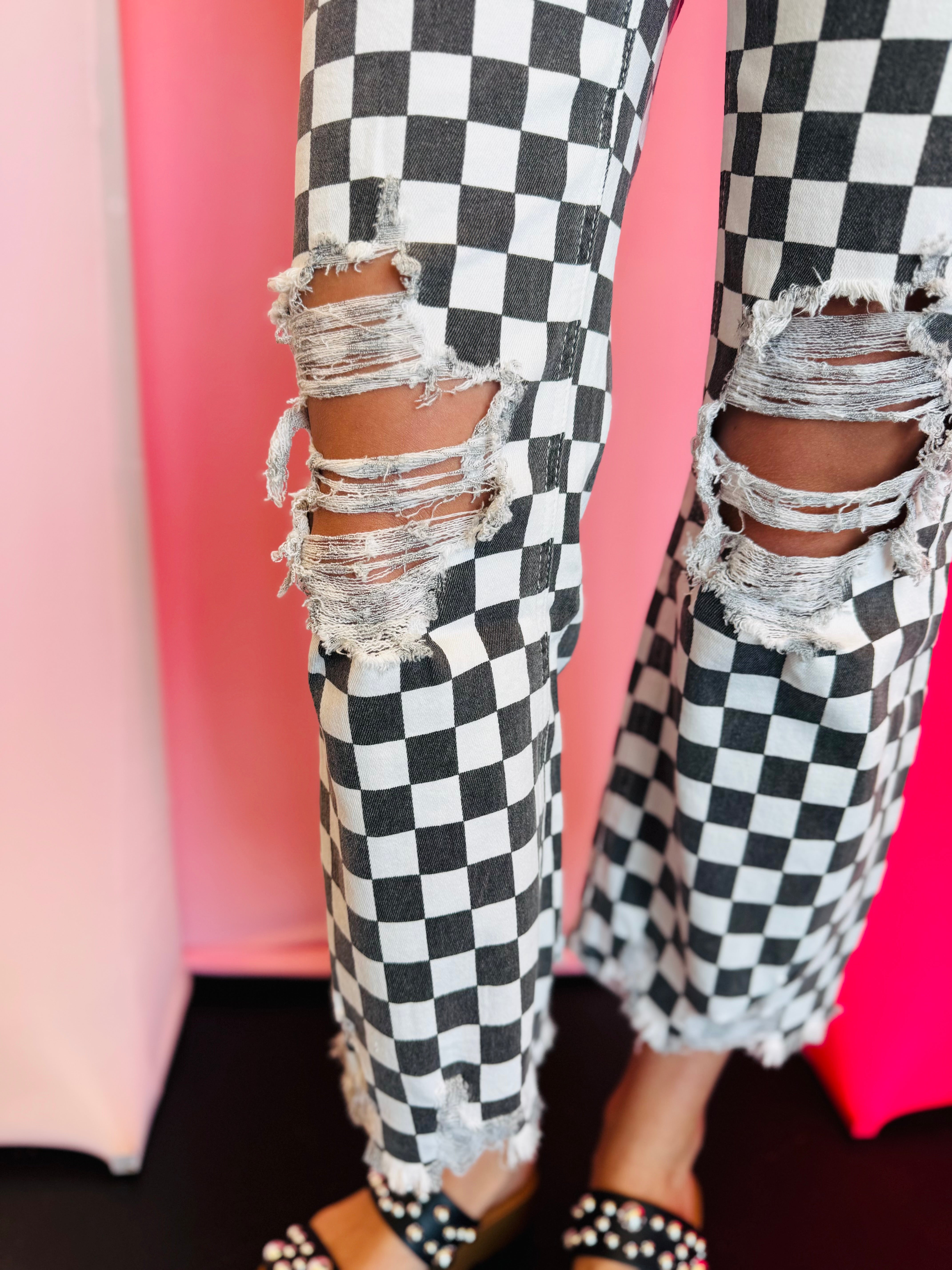 Round The Track Checkered Jeans – Bold Style Meets Everyday Comfort