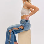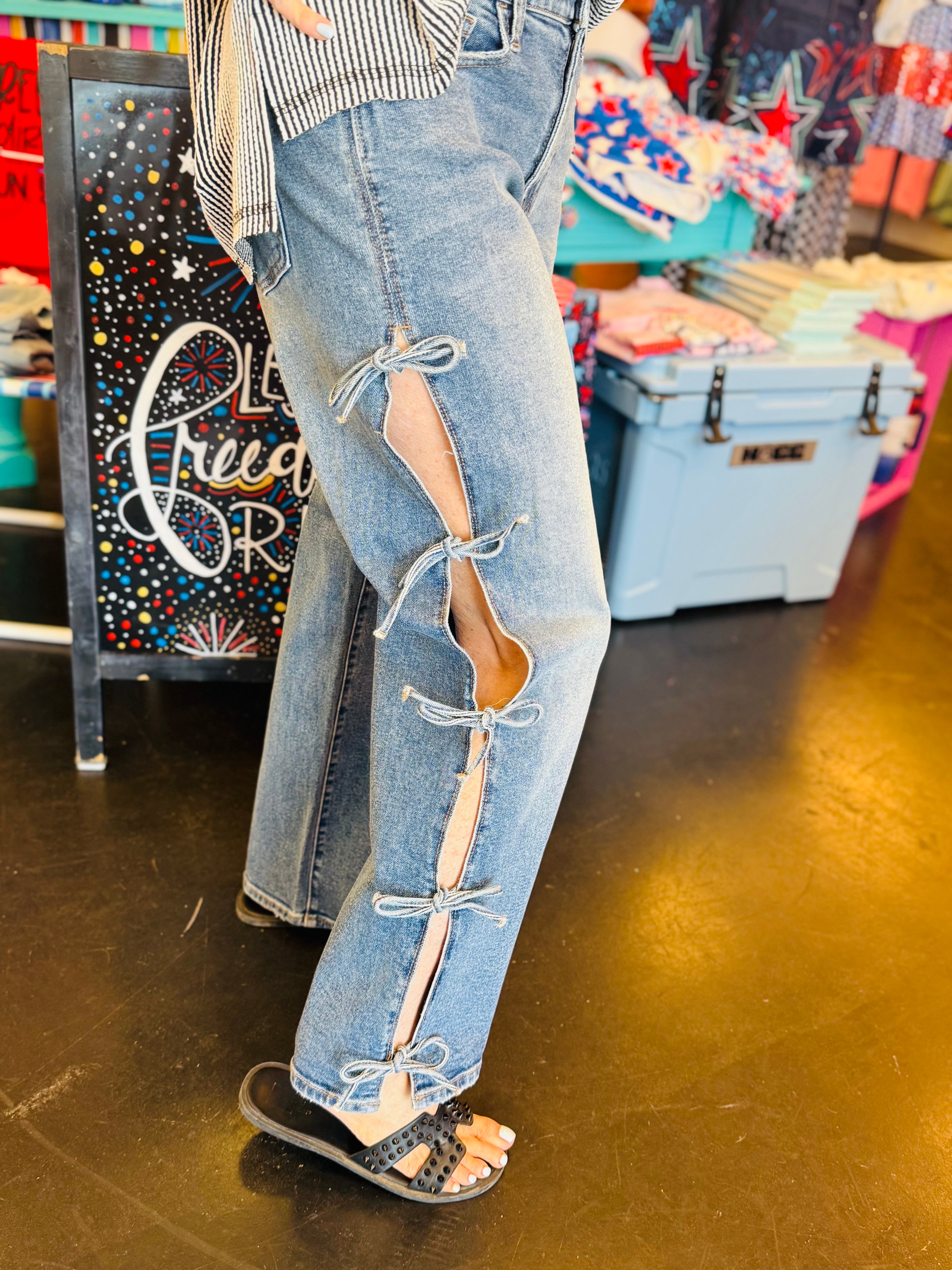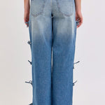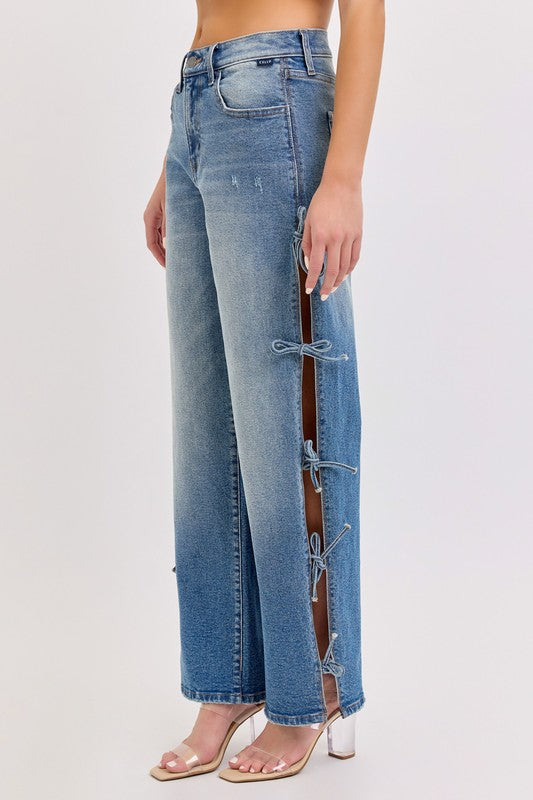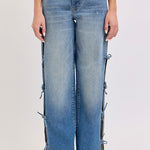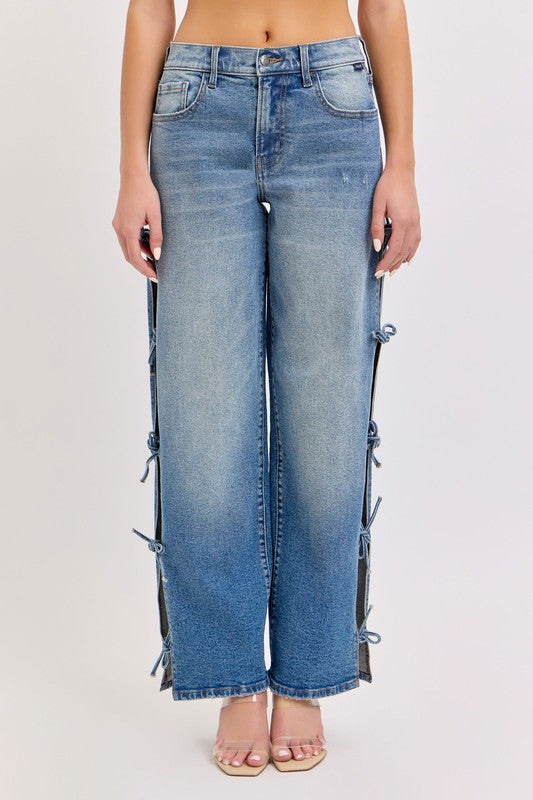 Step into comfort and style with these playful mid-rise denim jeans from Cello. Featuring a trendy baggy dad fit and a unique side self-tie detail, they add a fun twist to your everyday look. Perfect for casual days when you want to feel relaxed yet effortlessly cool.