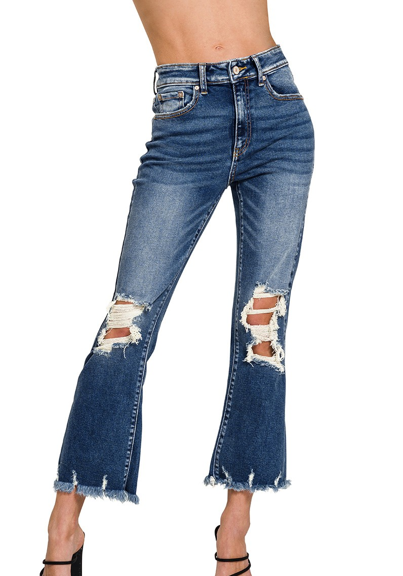 Zenana High Rise Cuffed Wide Leg Denim Jeans
