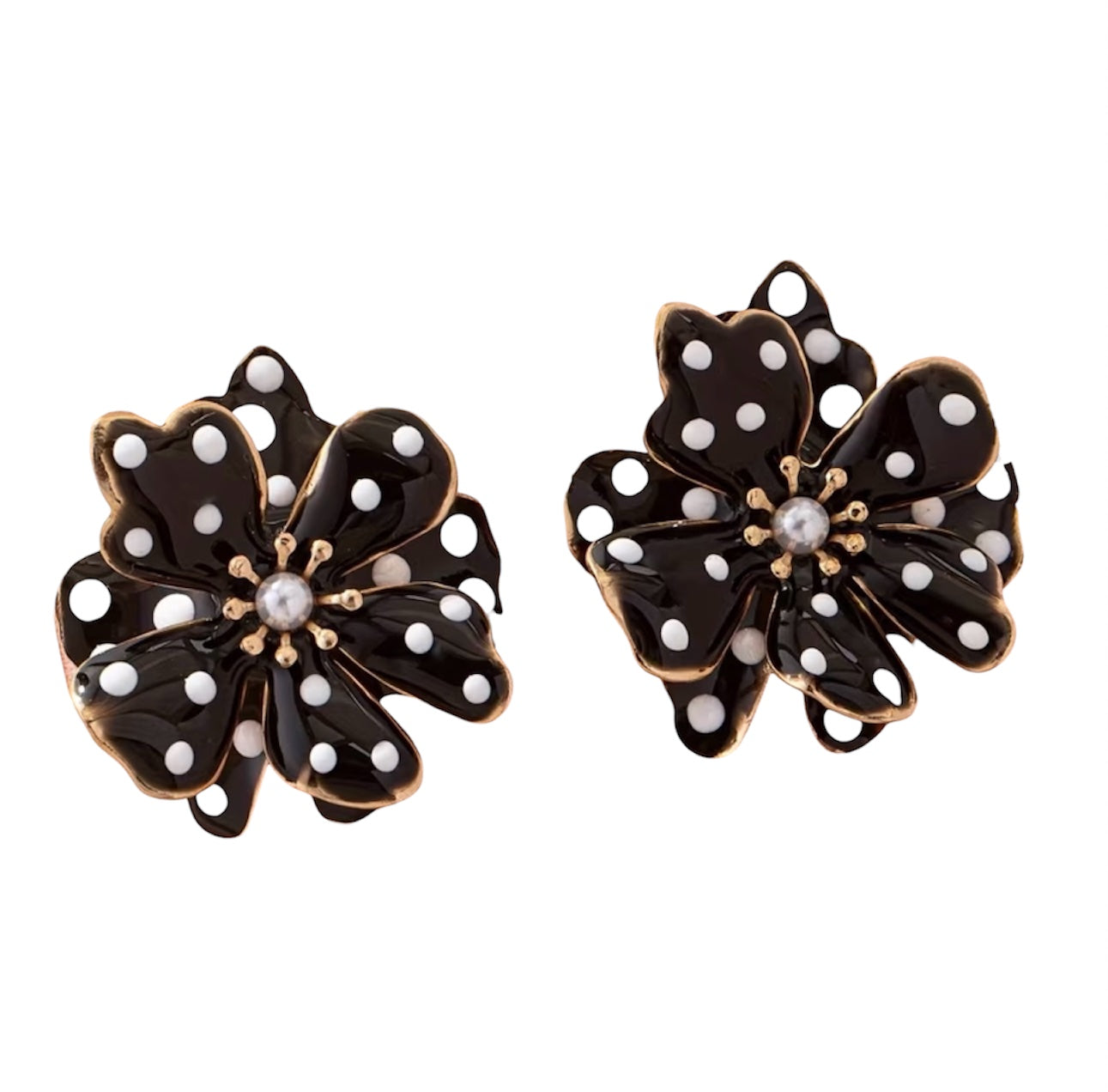Black & White Polka Dot Flower Earrings