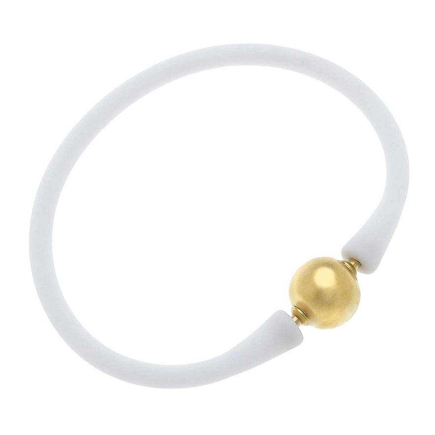 Elevate your style with this exquisite Bali 24K Gold Plated Ball Bracelet. Crafted with high-quality silicone and gold-plated beads, it stays comfortably waterproof for a timeless look that will never fade. Designed to fit any wrist size, its 2.5" diameter gives you a luxurious and fashionable style that will stand out in any ensemble. Simply roll on & off your hand, or open & close at the bead, to create the perfect arm party for every occasion.
