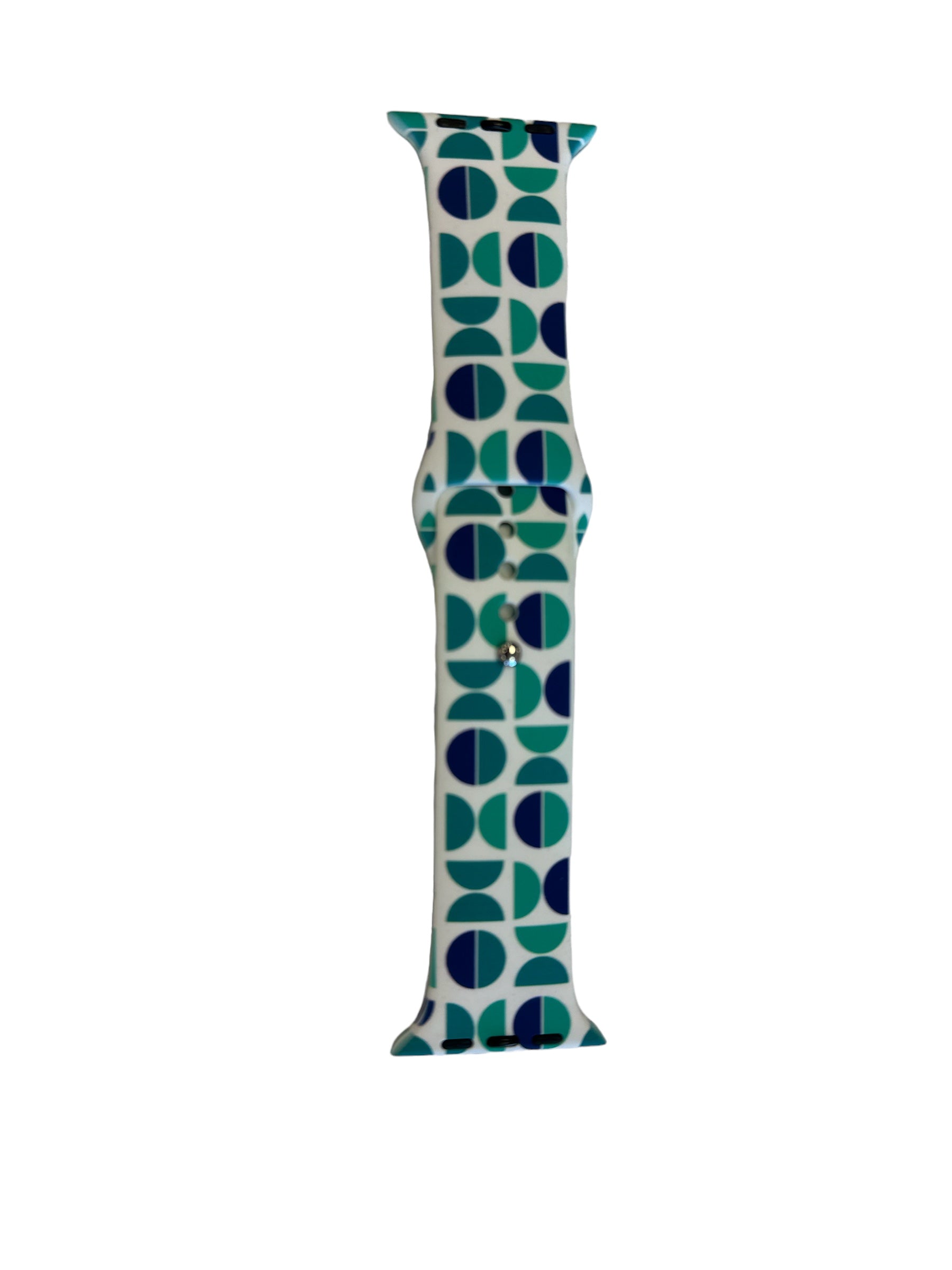 Upgrade your watch game with this Blue/Green Semicircle Watch Band. Made from high-quality silicone, it boasts varying positions of semicircles for a unique touch. With its playful design, this band will add some fun to your everyday look.