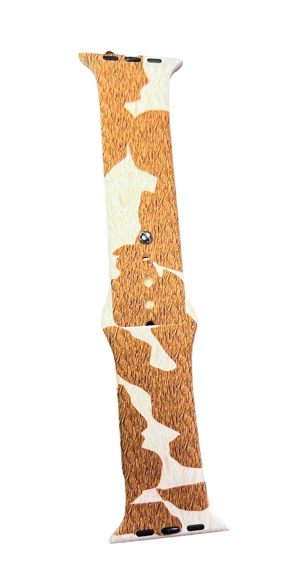 Silicone brown cow print smart watch band. 38/40mm and 42/44mm