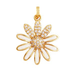 Add some sparkle to your necklace with this charming flower charm. The white pedals catch the light and add a touch of whimsy to any outfit. Perfect for those who want to add a playful touch to their accessories.