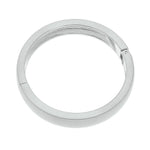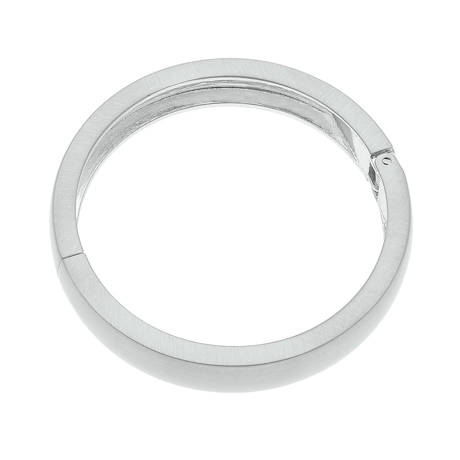 Capture modern glamour with our Clara Hinge Satin Silver Bangle. Crafted with polished satin-finished silver plating, this lightweight and delicately textured bangle adds a touch of current fashion to any look. The hinge closure ensures a secure fit. Shine like the star you are in Clara!