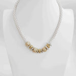White snake chain necklace with diamond and gold disk moveable pendant.