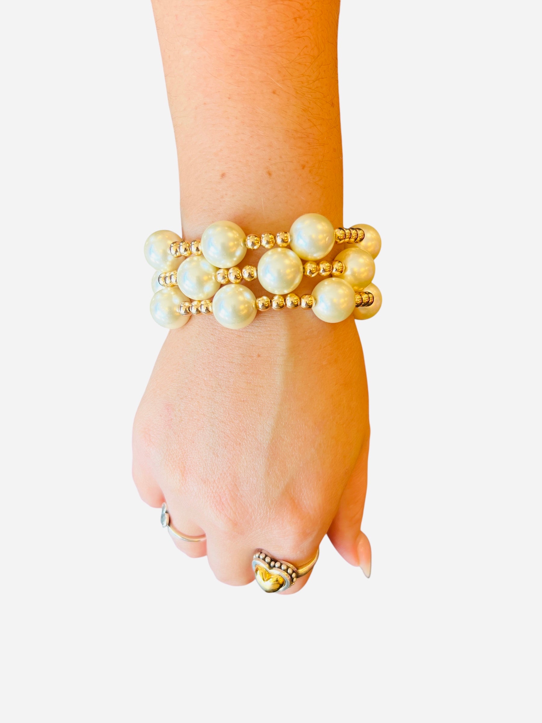 Pearl & Gold Beaded Stretch Bracelets (Water Resistant)