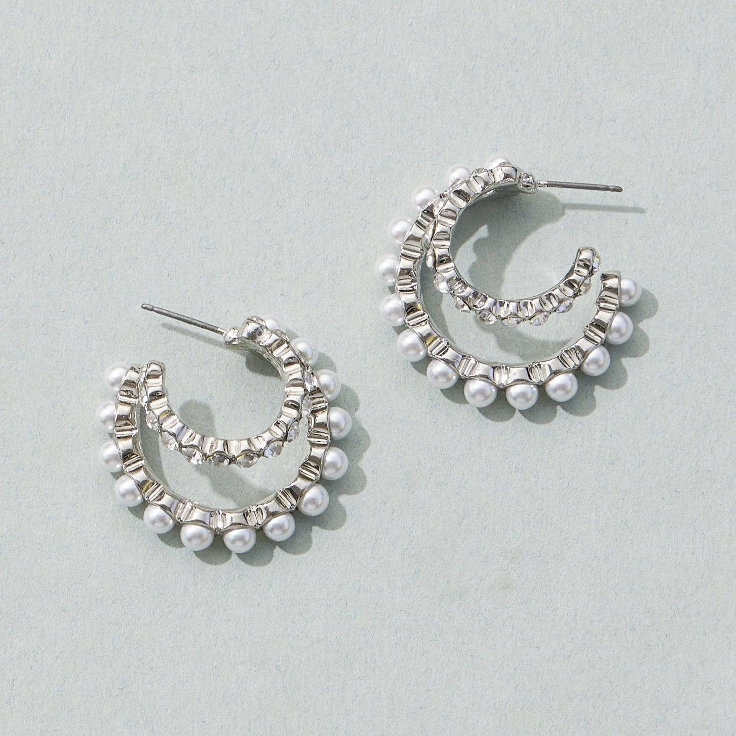 Elevate your everyday style with these elegant double hoop earrings featuring timeless pearl and rhinestone accents. Designed with a modern layered look, each earring showcases two classic hoops—one adorned with shimmering rhinestones for added sparkle, and the other detailed with luminous faux pearls for a soft, sophisticated finish. The balanced combination of shine and elegance makes these earrings versatile enough for both casual wear and special occasions. Lightweight and comfortable, they’re perfect for all-day wear while still making a polished statement. Ideal for weddings, date nights, workwear, or gifting, these pearl and rhinestone double hoop earrings are a must-have addition to any jewelry collection or boutique display.