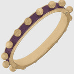 This Jenna Chunky Studded Bangle is the perfect complement to any look. Crafted from base metal, it has a worn gold plating and is plated in purple enamel for a unique touch. The 3” diameter ensures a comfortable fit.