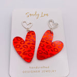 Add a bold, flirty touch to your accessory lineup with these Valentine Red Heart Earrings, designed to make a statement while staying lightweight and comfortable. Featuring asymmetrical heart-shaped drops in a vibrant red tone, these earrings showcase a subtle leopard-inspired pattern that adds texture and visual interest with a playful edge. The unique mismatched design gives these Valentine Red Heart Earrings a modern, on-trend feel that stands out beautifully.