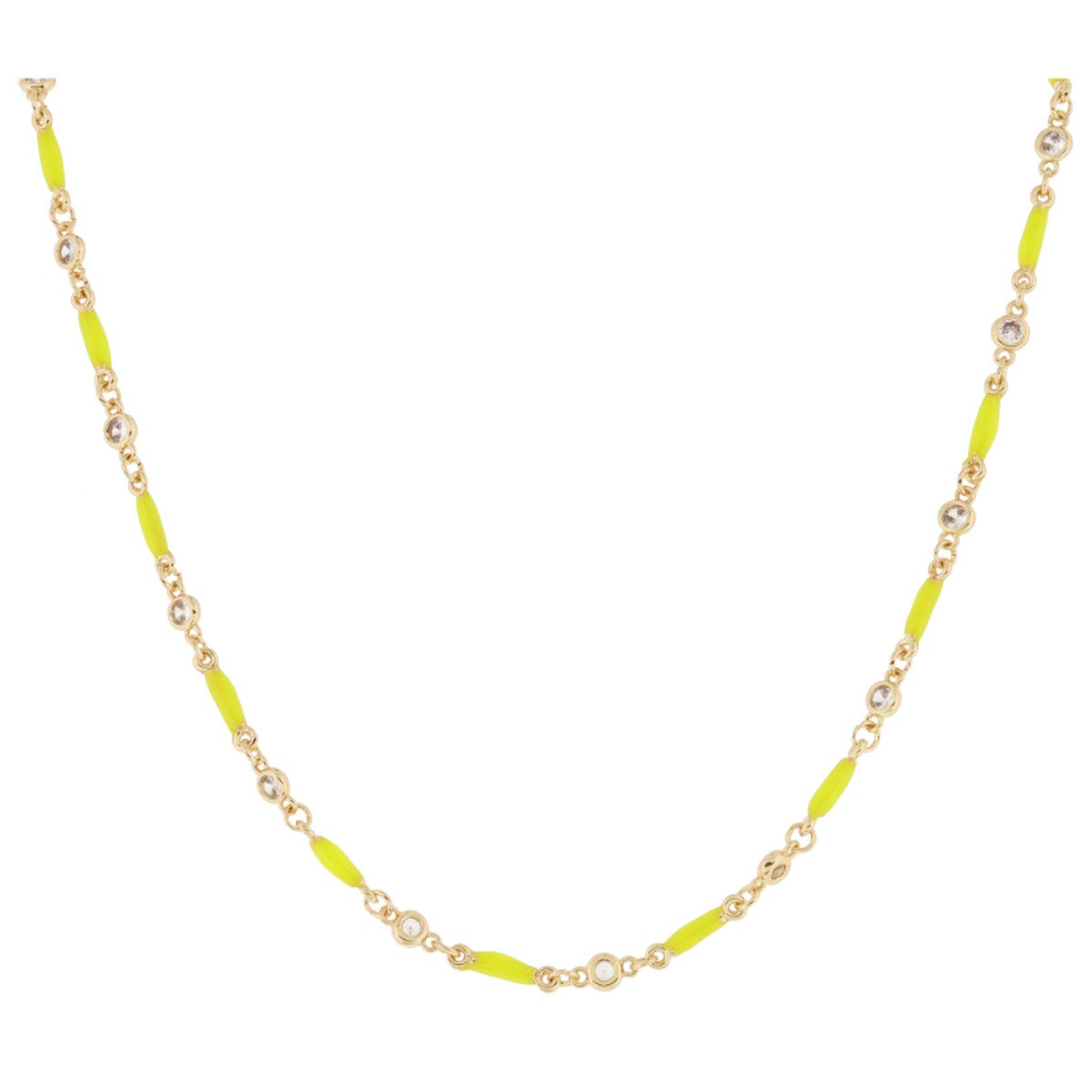 Add a pop of color to your outfit with our Yellow Enamel Link Necklace. Featuring mini bright yellow enamel bars and clear crystal links, this playful necklace will surely brighten up your look. Stand out from the crowd with this unique piece.