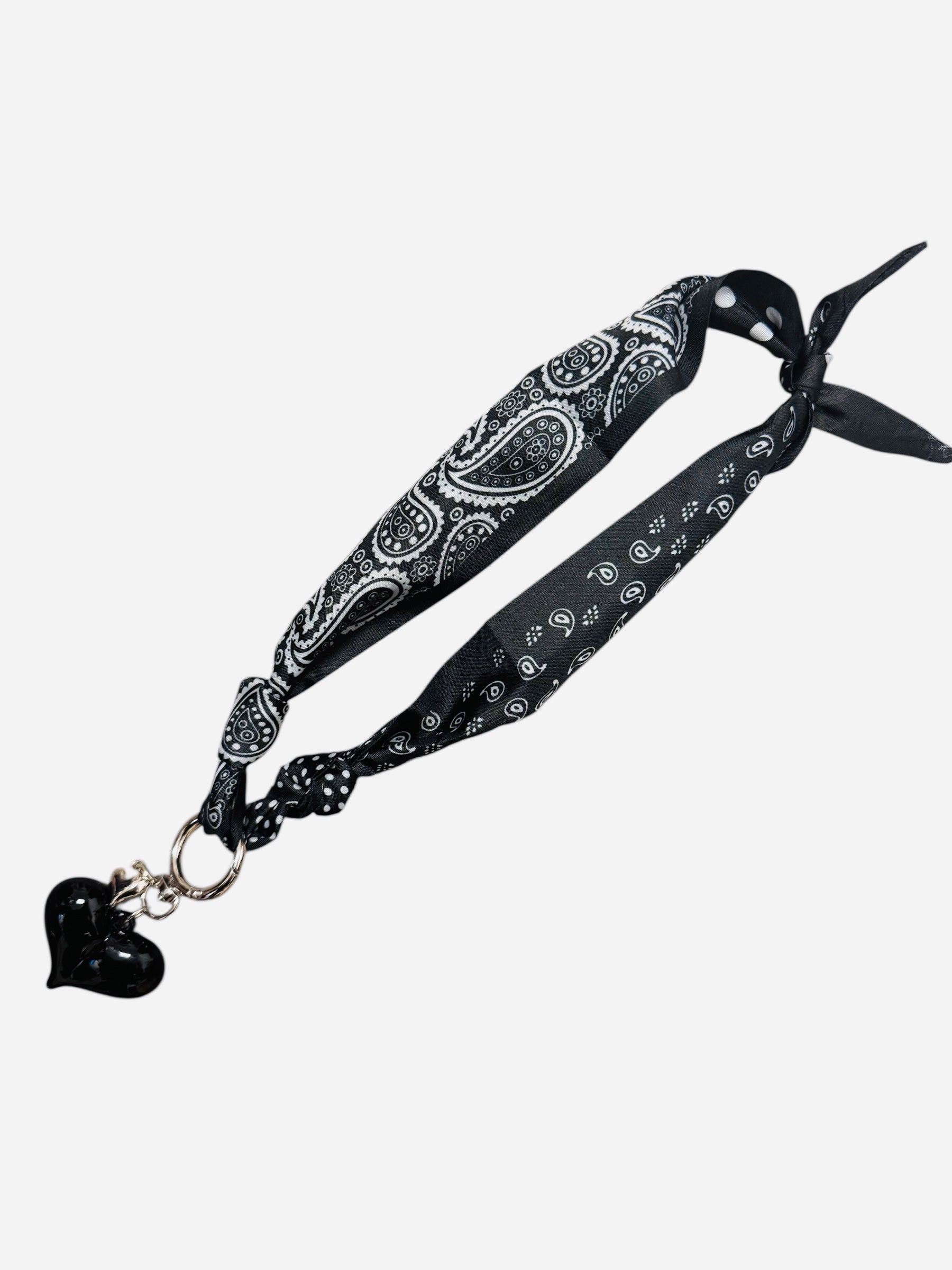 Black Dotted Bandana Heart Charm Scarf Necklace