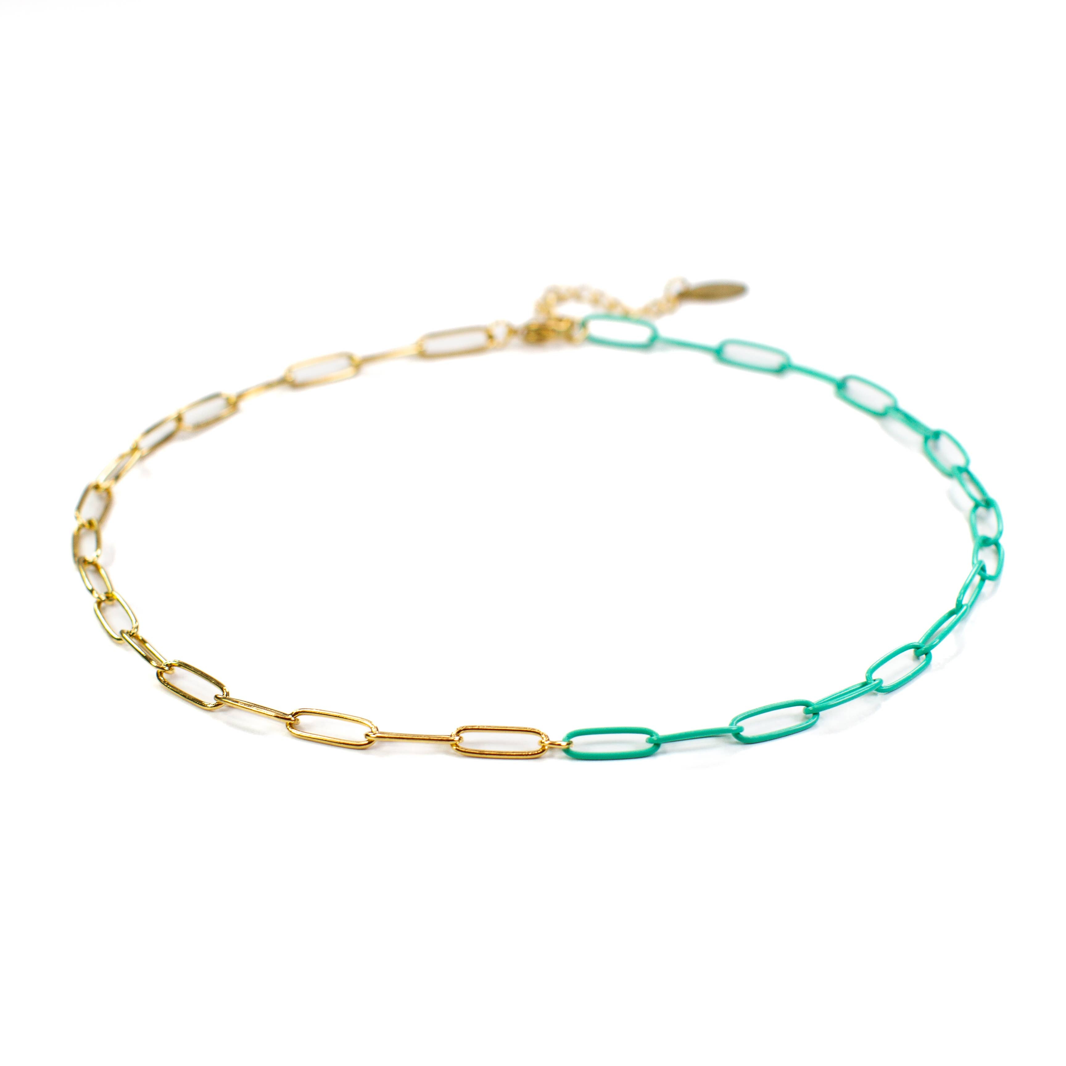 Gold & Navy Blue Paperclip Chain Link Necklace