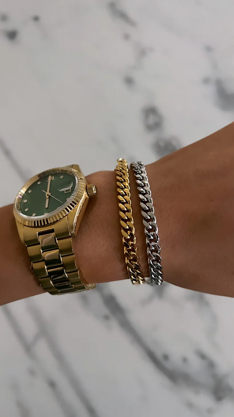 Gold Leather Cuff & Red Rhinestone Bracelet