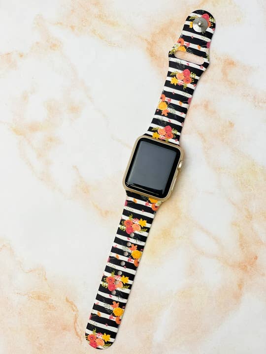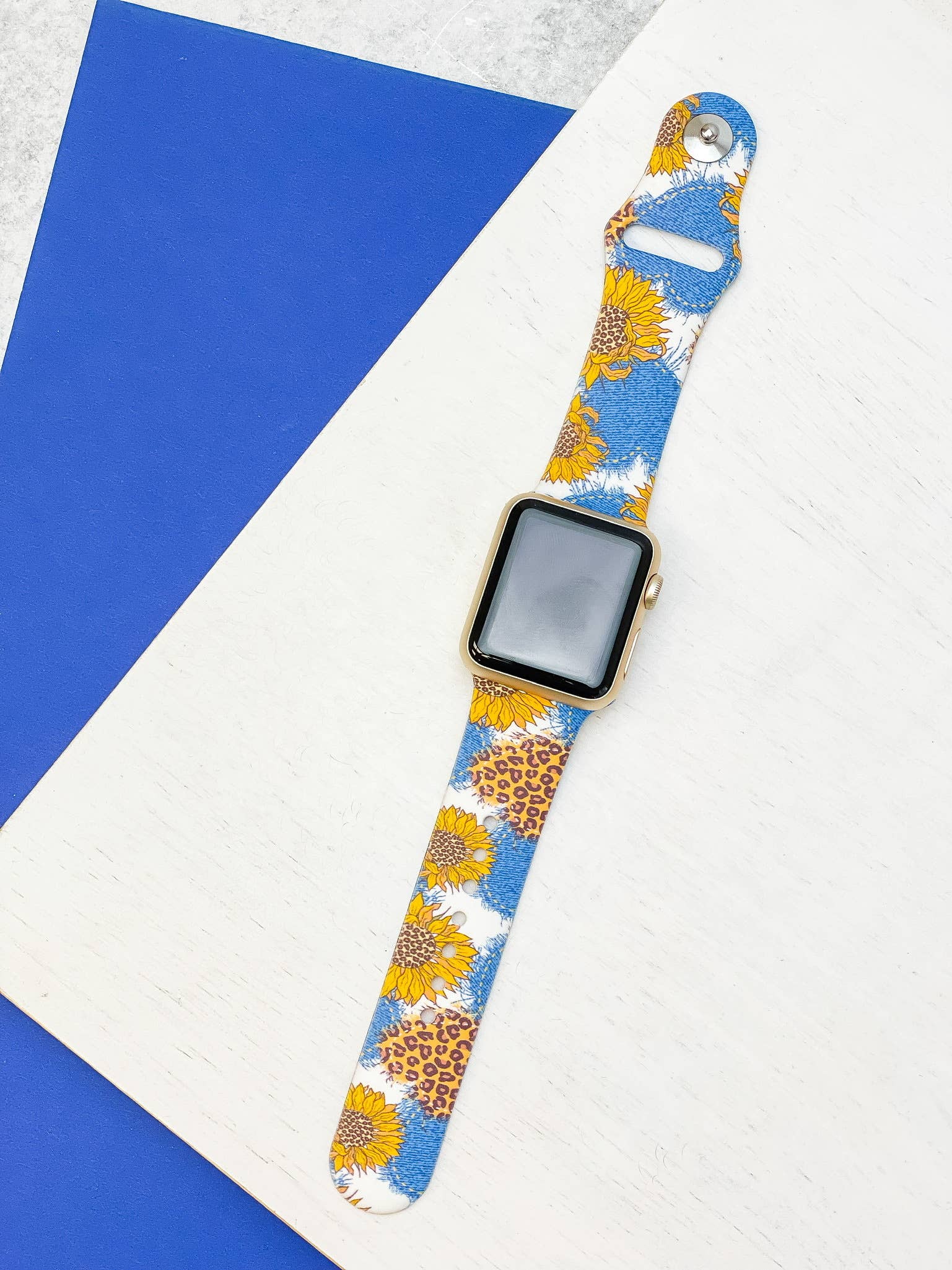 Cheetah Sunflower & Denim Printed Silicone Smart Watch Band