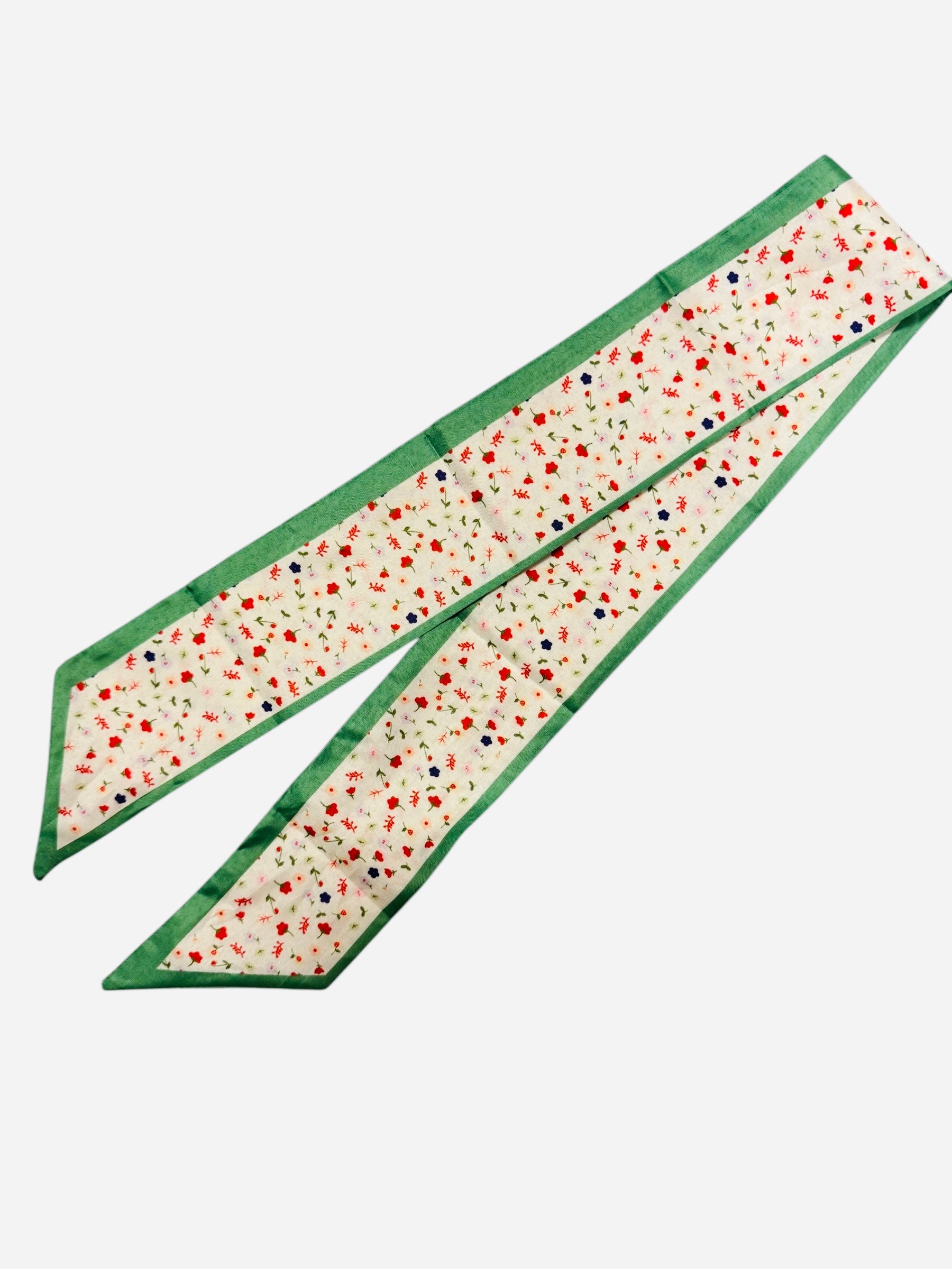 Cream Floral/Green Trim Scarf Tie