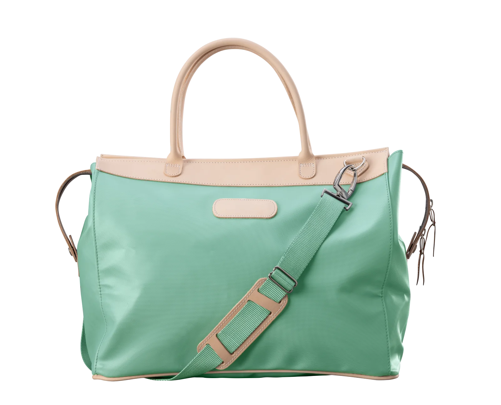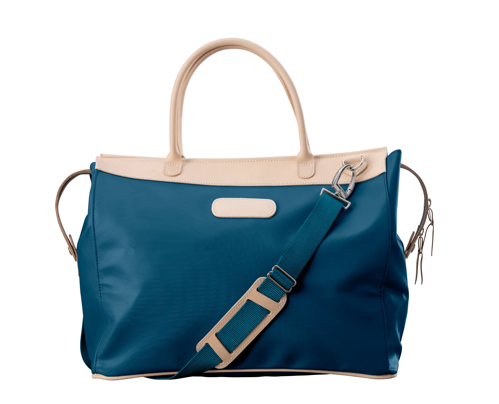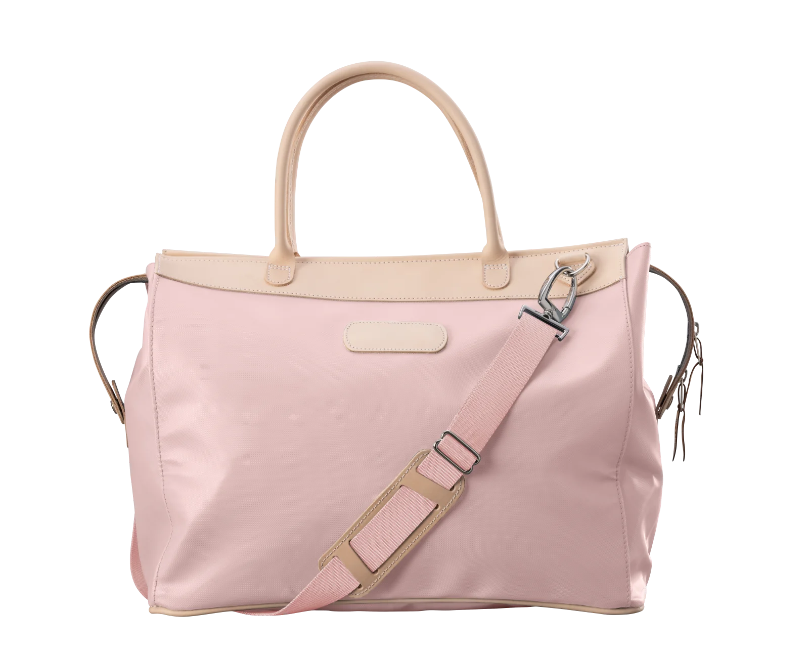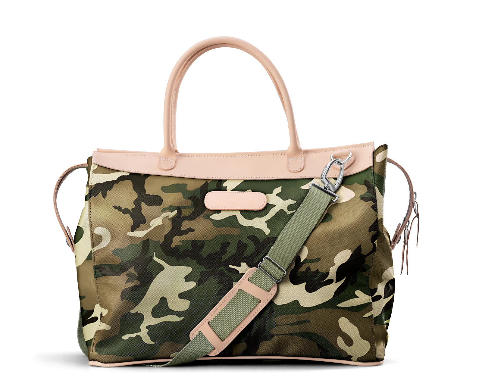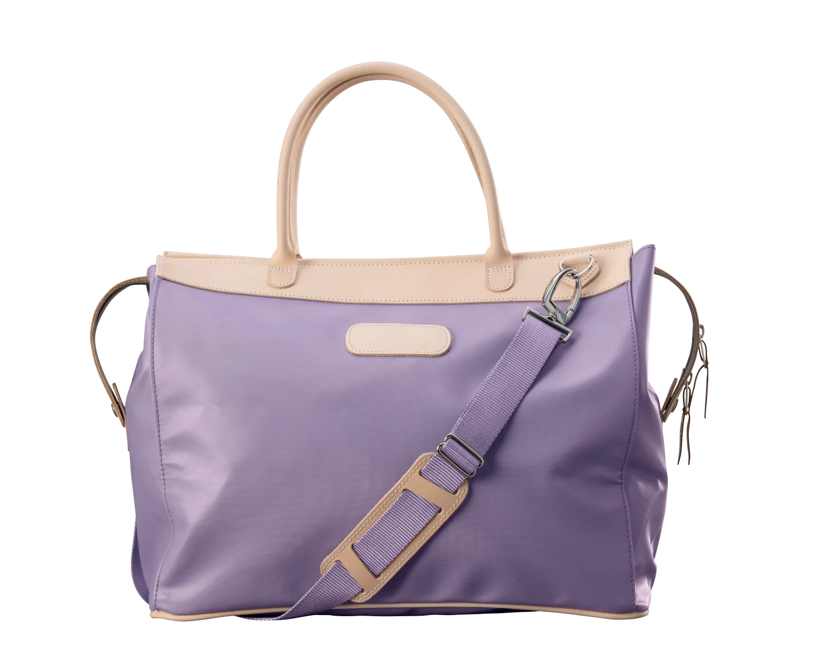 Discover the perfect balance of style and function with the Jon Hart Burleson Bag, a timeless travel companion designed for both short getaways and long weekends. Crafted from durable coated canvas and accented with premium natural leather trim, this bag is built to last while maintaining an effortlessly classic look. The spacious interior offers plenty of room for clothing, shoes, and essentials, while a zippered pocket inside helps keep smaller items organized. A back exterior zippered pocket adds quick access to travel must-haves. The fully zippered closure with silver hardware ensures your belongings stay secure, while natural leather handles and a detachable webbing crossbody strap provide multiple carrying options. Finished with a leather-trimmed base and silver feet for extra durability, the Jon Hart Burleson Bag is the perfect choice for stylish, organized travel.