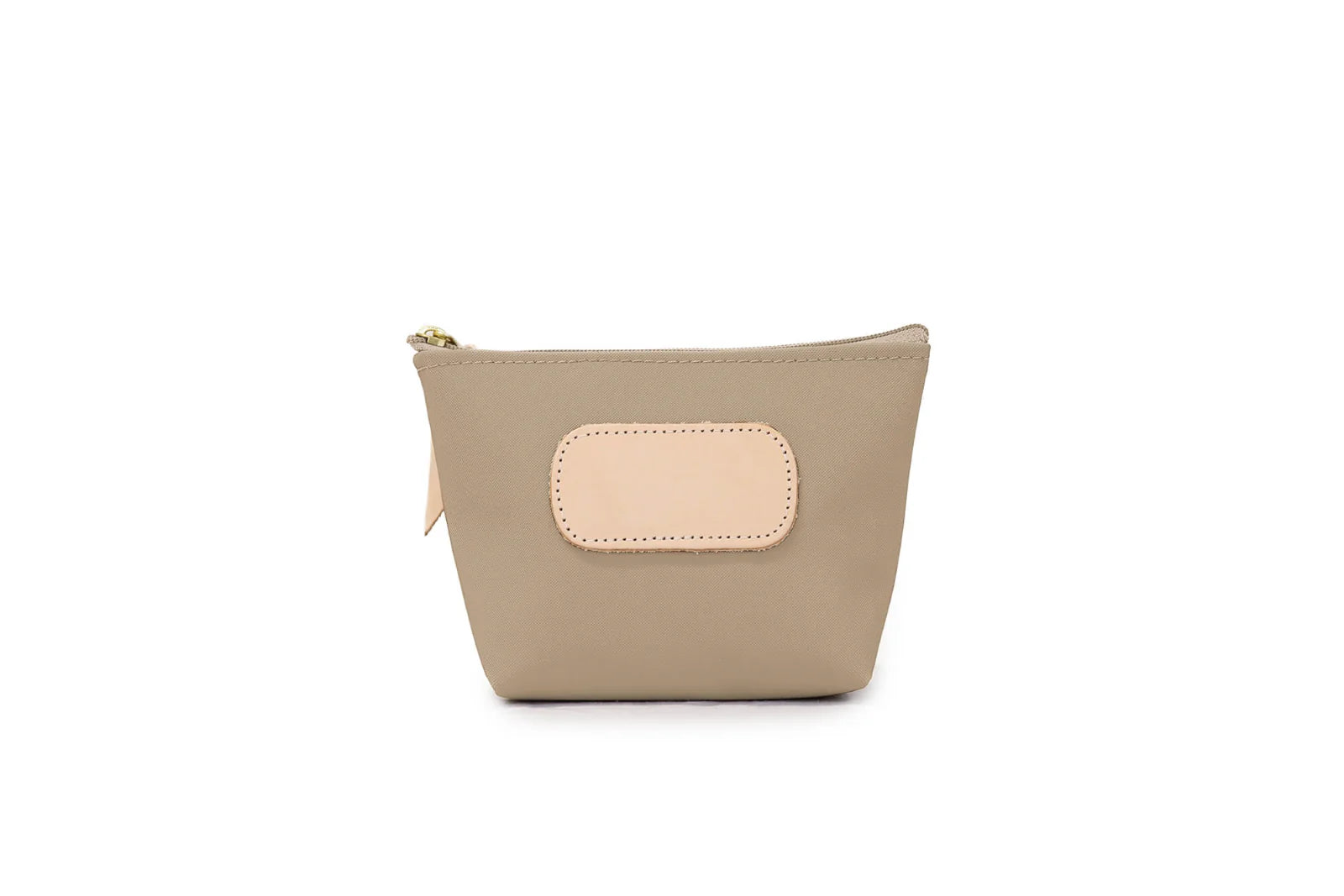 Meet your new go-to for everyday organization: the Jon Hart Chico Bag. Perfect for stashing all of life’s smaller essentials, this flat-bottom pouch keeps makeup, tech accessories, travel toiletries, and more neatly in place. Crafted from durable coated canvas and finished with natural leather trim, it’s built to last while maintaining a timeless, upscale look. A fully zippered closure with sturdy brass hardware secures your items, and the structured bottom ensures the bag sits upright—no tipping or spilling. Available in a variety of coated canvas colors or in a clear version for easy viewing, the Chico is ideal for travel, gym bags, or everyday carry. Thoughtful and practical, it also makes a perfect gift, because nobody can have too many Jon Hart bags.