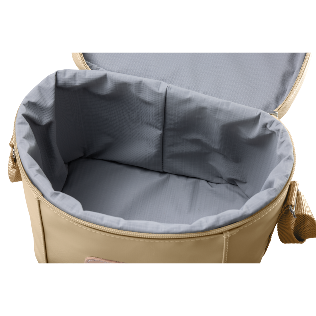 Stay organized and stylish on the go with the Jon Hart Frio Lunch Bag, a versatile insulated carryall built for far more than food. Perfect for lunch, camera gear, tech accessories, or breastfeeding storage, this upgraded lunch bag keeps contents cool and fresh with a removable insulated insert that makes cleanup quick and easy (note: not made to hold loose ice). The thoughtfully designed interior comfortably fits up to a 6-pack with a cold block, while the zippered closure and adjustable shoulder strap ensure secure, convenient transport. A handy back open pocket provides extra storage for napkins, utensils, or small accessories. Crafted from durable coated canvas and finished with natural leather trim, the Jon Hart Frio Lunch Bag combines dependable function and timeless style—ideal for workdays, school, or weekend adventures.