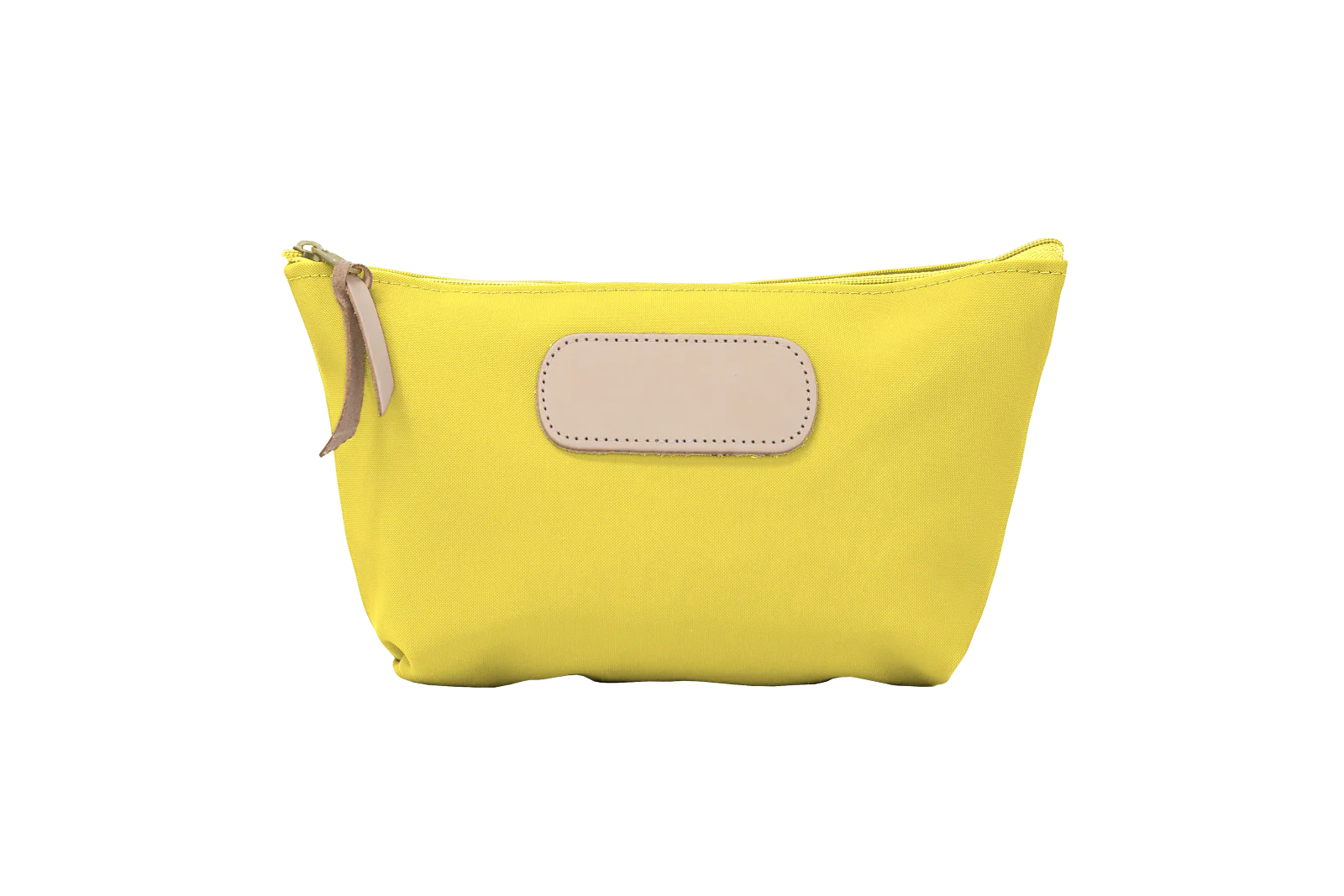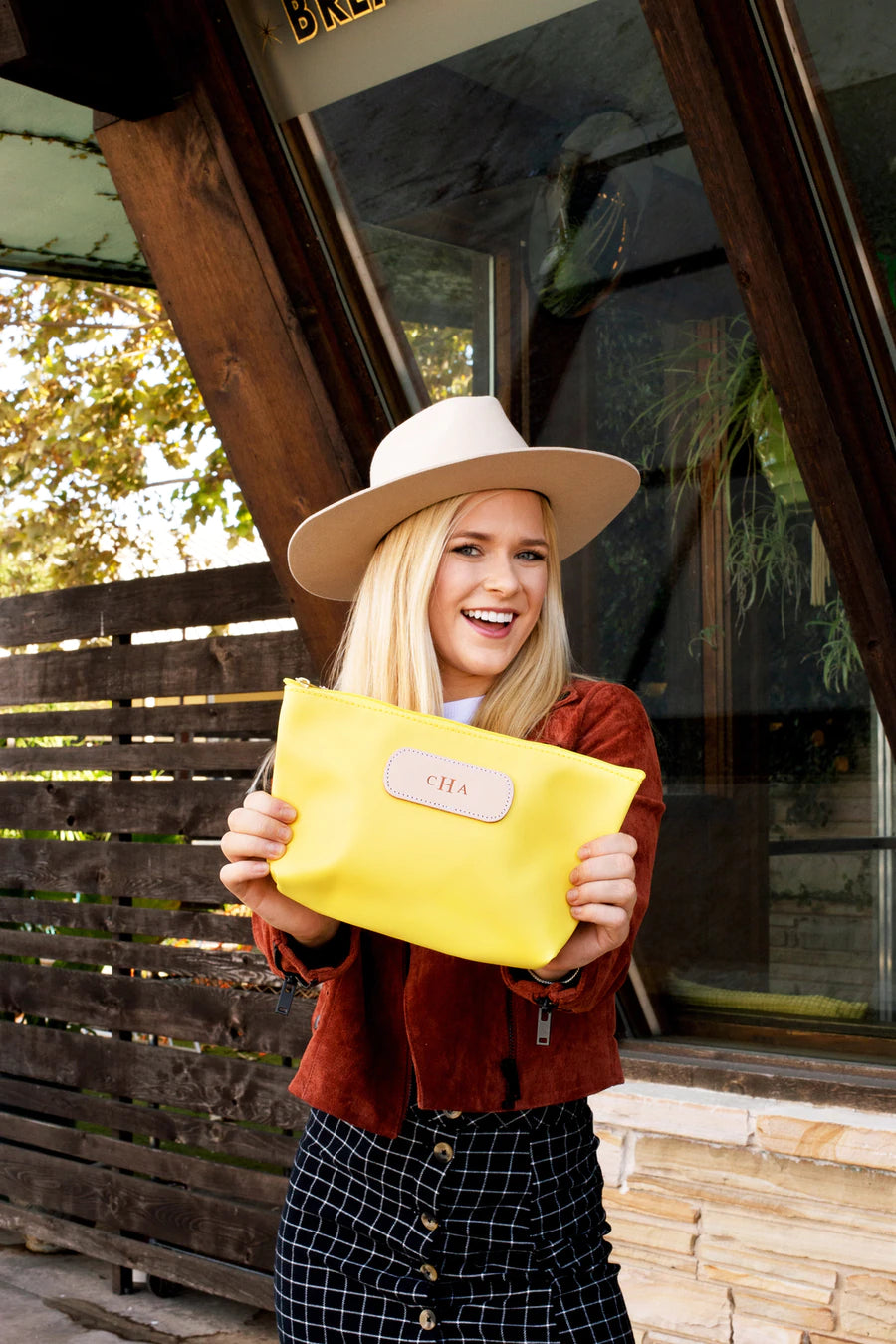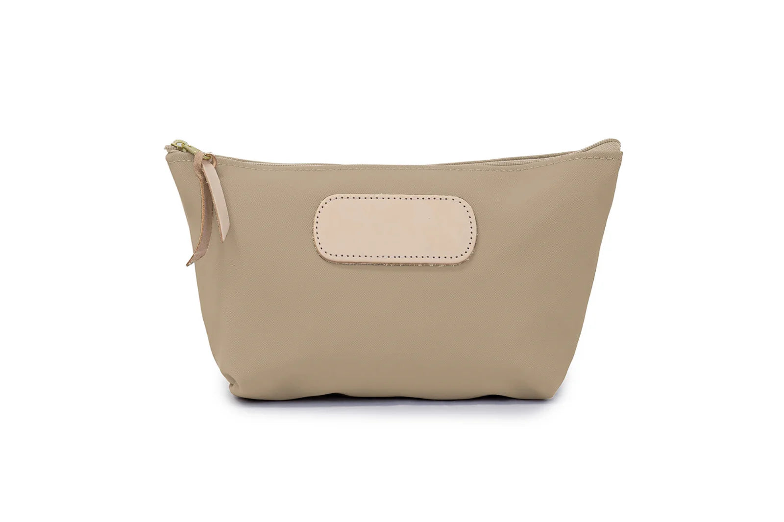 Upgrade your everyday carry with the Jon Hart Grande Bag, a customer favorite that’s a size up from the best-selling Chico. Handmade in Texas with coated canvas and natural leather trim, this flat-bottom bag combines timeless craftsmanship with practical versatility. The fully zippered closure and sturdy brass hardware keep your essentials secure, while the structured design allows the bag to sit upright on its own. Perfect for travel toiletries, cosmetics, tech accessories, or on-the-go organization, the Grande also makes an exceptional gift—because no one can have too many Jon Hart bags. Available in classic coated canvas or a clear style for easy viewing.