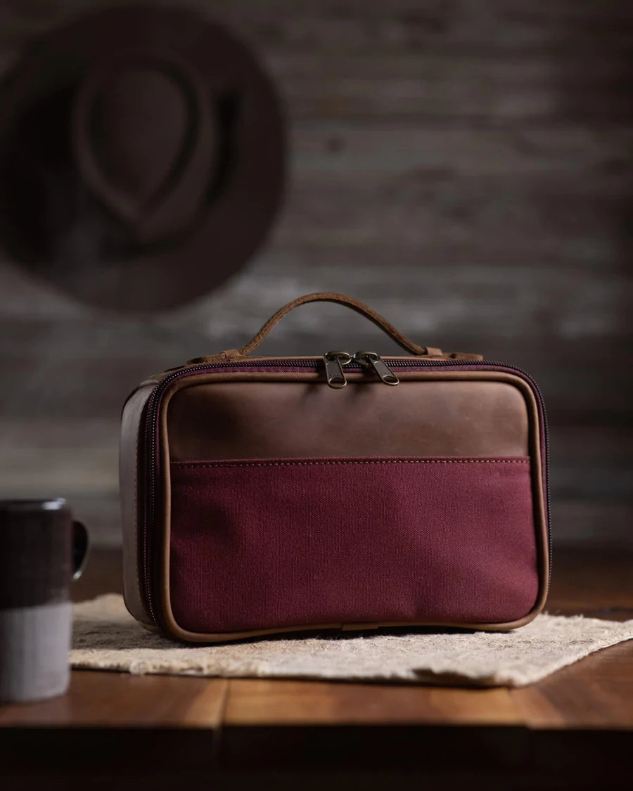 Equally important as your travel bag itself, a proper dopp kit can make all the difference when you’re living out of a suitcase. Rugged canvas and premium oiled leather on the outside with lined elegance on the inside.