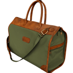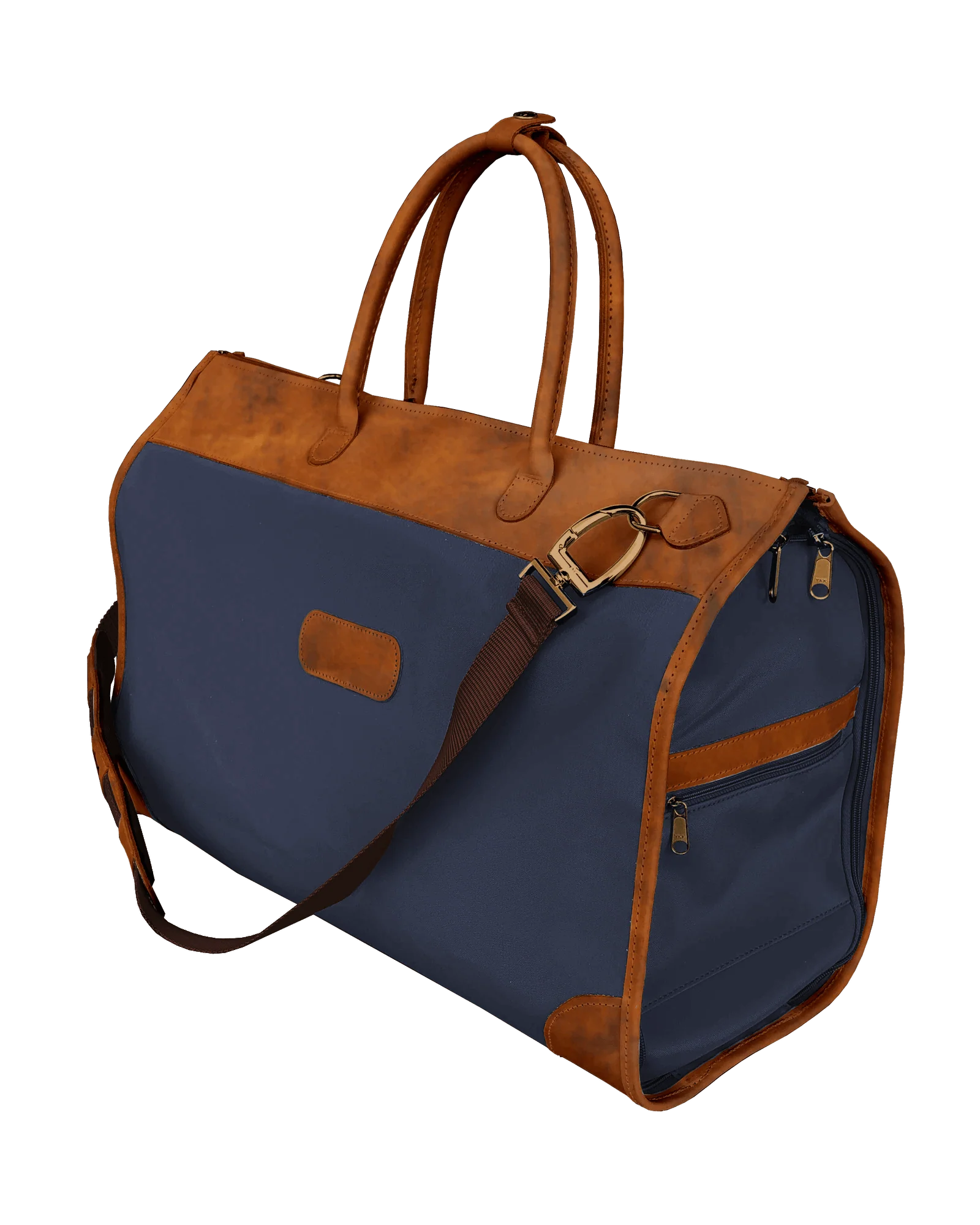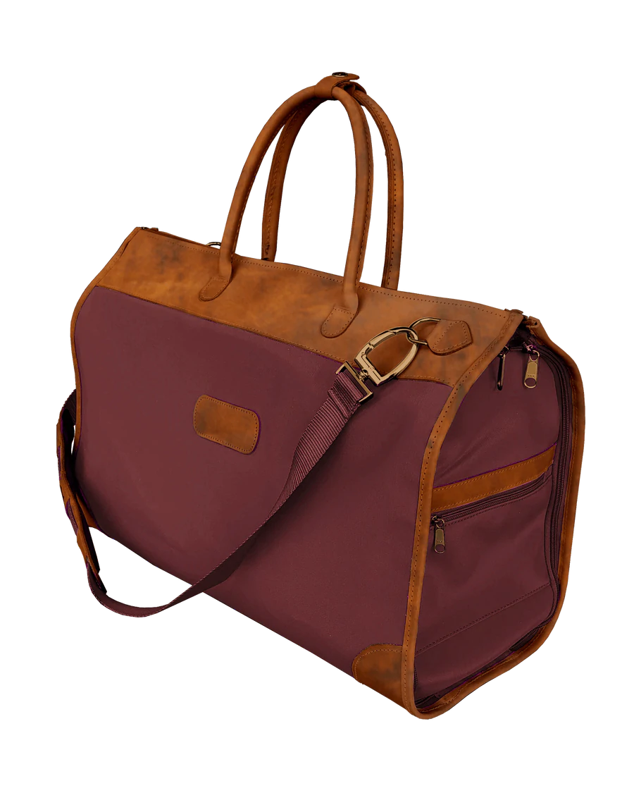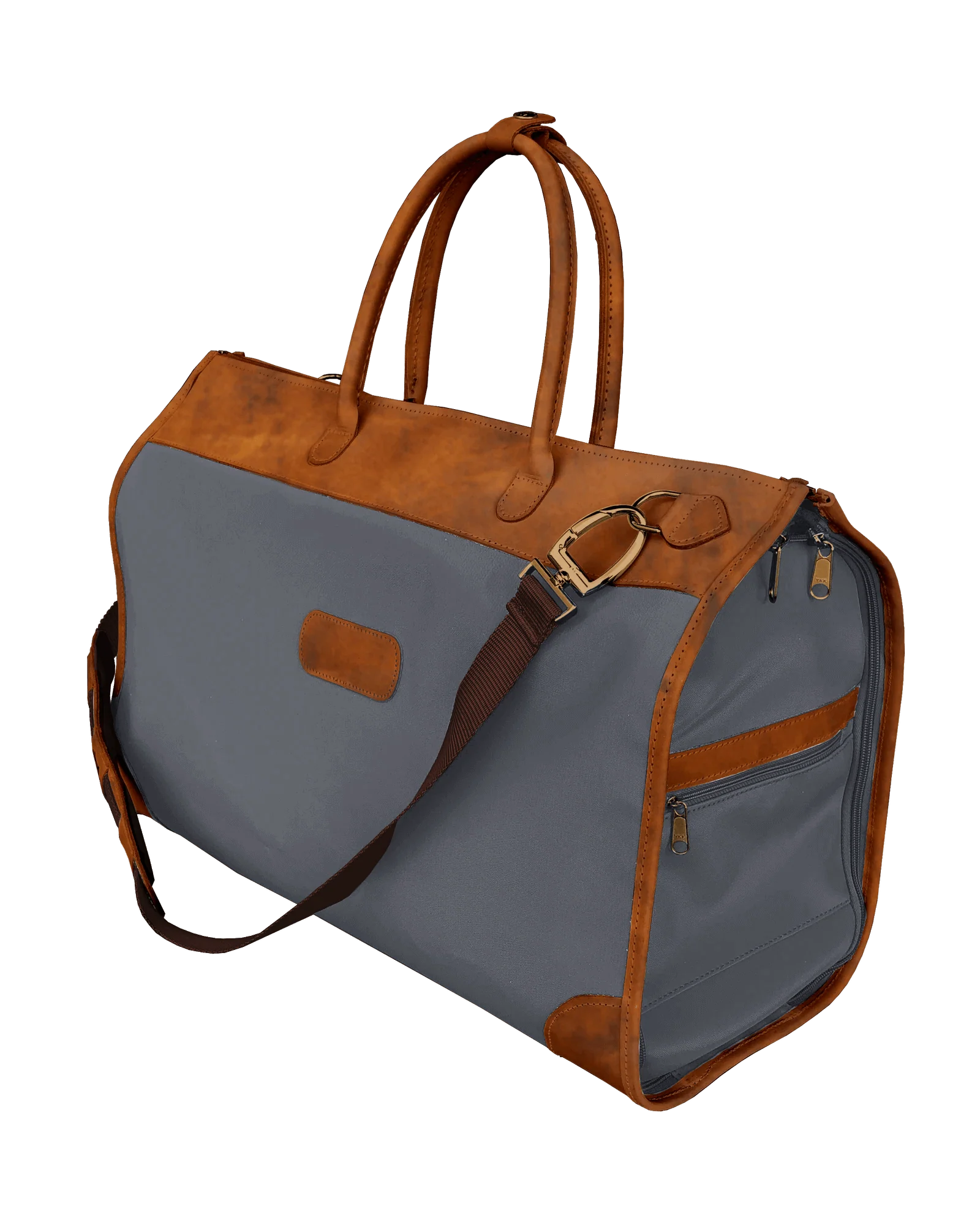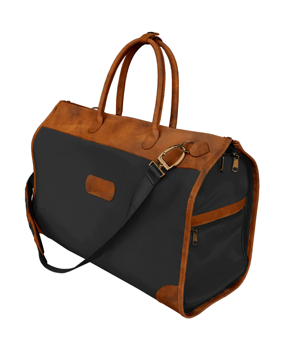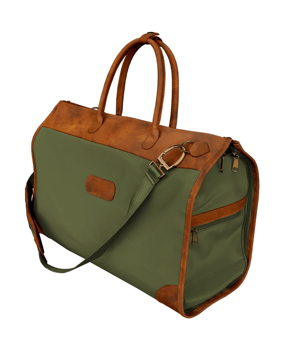 The JH Southtown is a must-have for all travelers looking for a more rustic look. Marked by the classic JH Oiled Leather & Cotton Canvas combination, this bag is fully lined to protect all of your belongings while on the go. This stylish carry-on compliant duffel bag fully unzips to convert into a hanging garment bag, and folds completely flat when being stored. Includes rolled oiled leather handles, as well as an adjustable shoulder strap for comfort carry. Contains zippered exterior pockets on both ends & elastic interior pockets for shoes, socks, or undergarments. Includes zippered exterior pockets on the back of the bag that double as a trolley sleeve. Comfortably fits up to 5 suits.