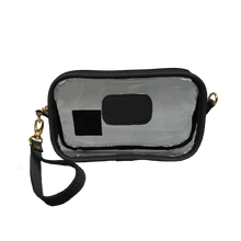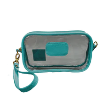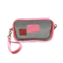Everyone’s favorite Wristlet now in CLEAR! This Clear Wristlet is a must have for games, concerts, pool days, beach trips & all other events! With over 15 colored leather trim options to choose from, you can’t go wrong!