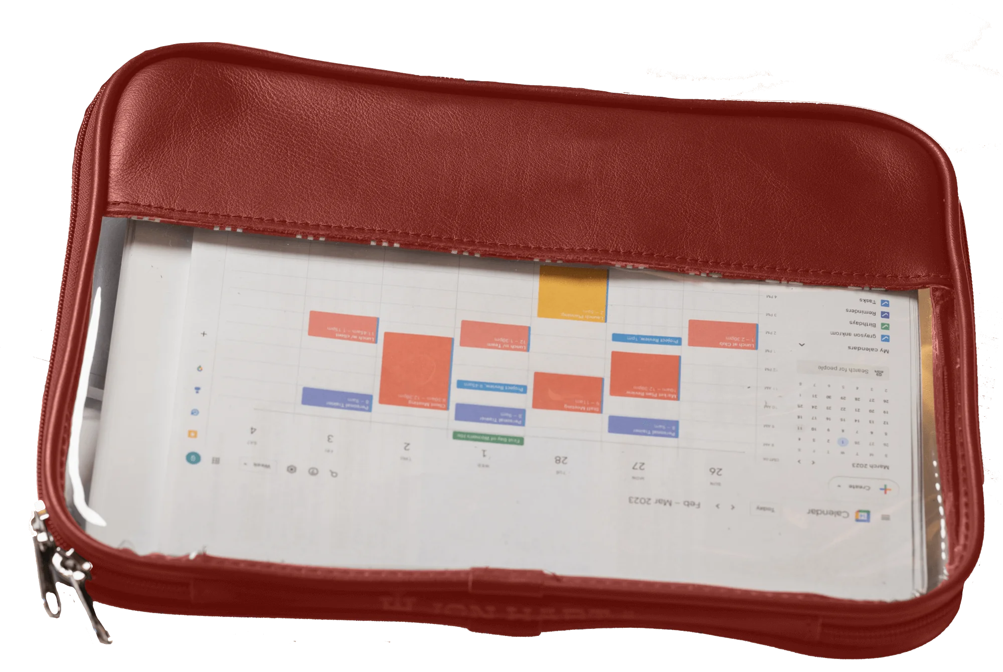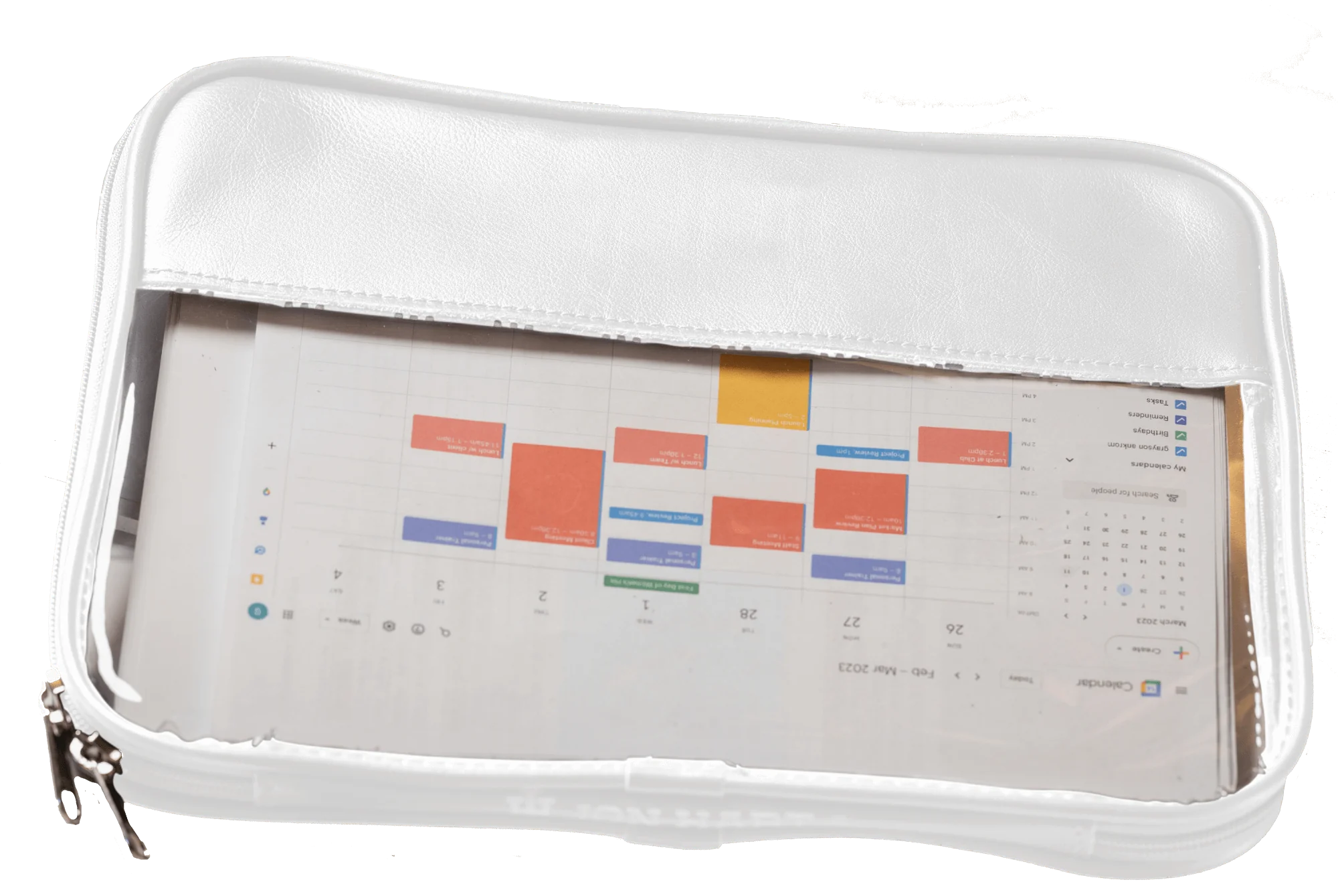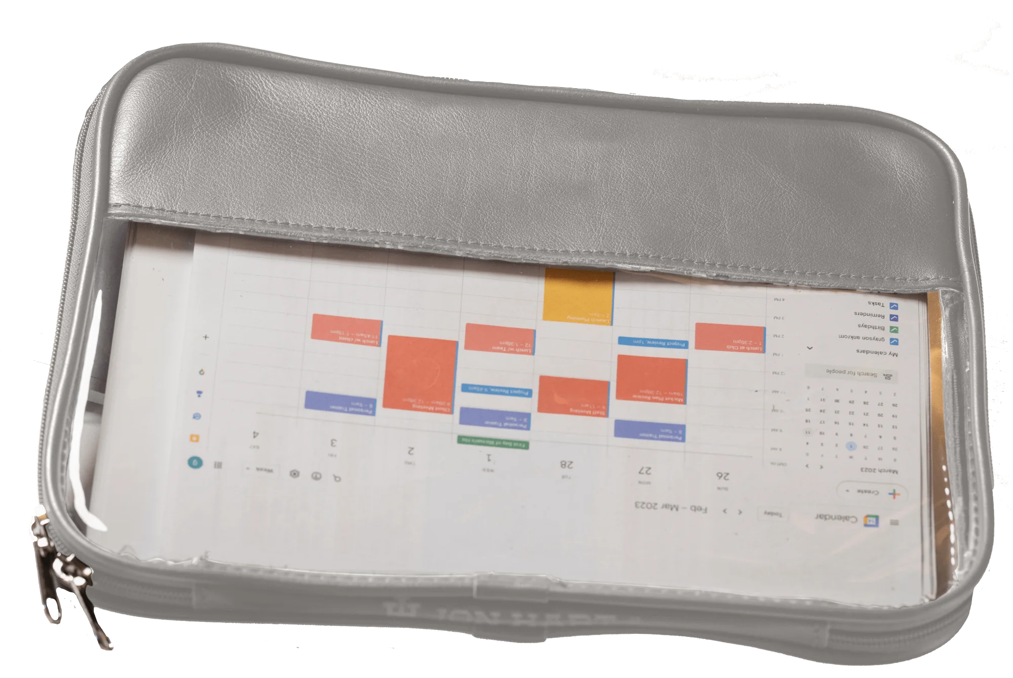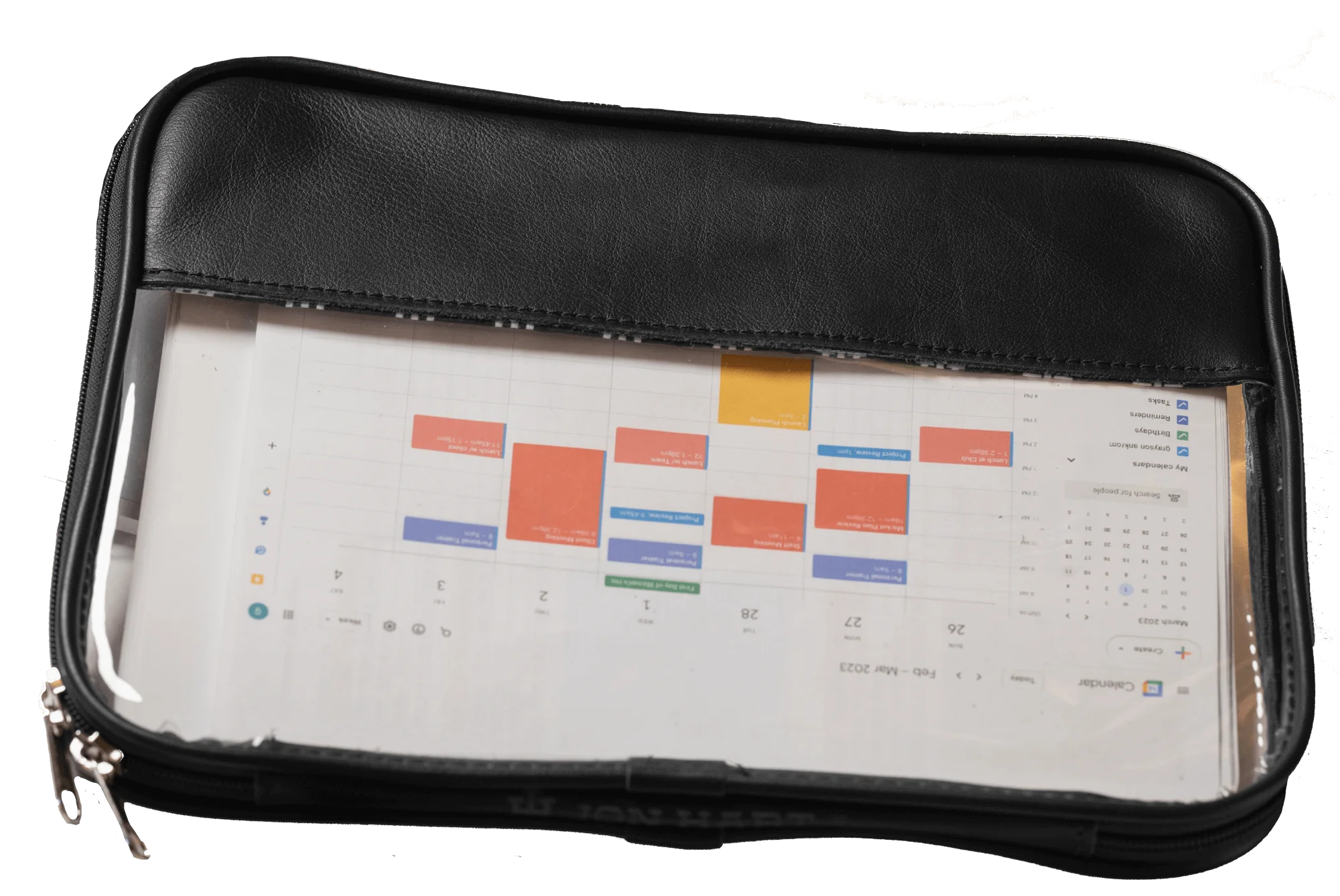 Leave your worries behind & your stress in the folio. The Clear Folio keeps you organized at work, while traveling and even just around the house! It keeps full sized papers, notebooks, important documents and so much more protected and organized. Also comes in Coated Canvas & the JH Cotton Canvas.