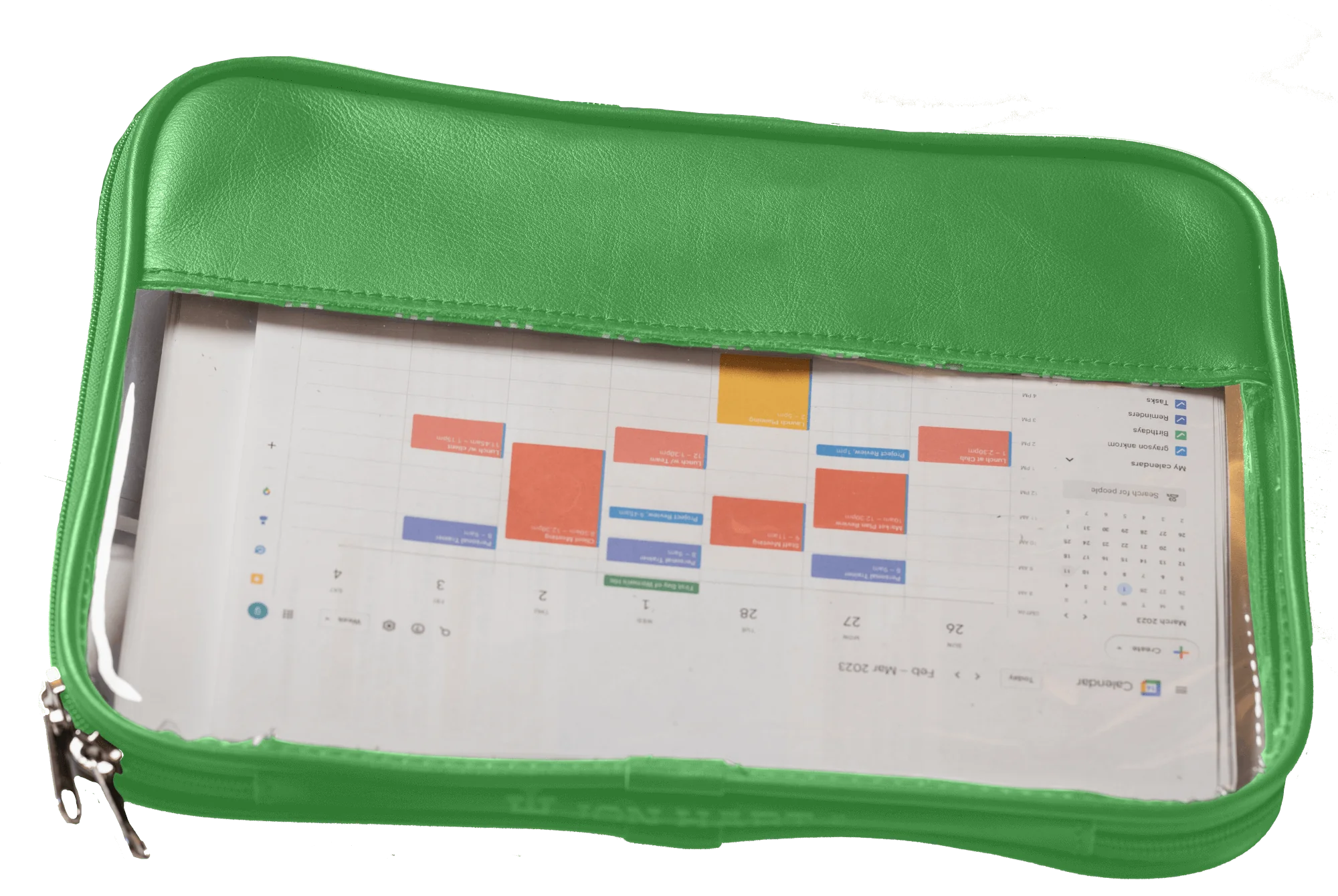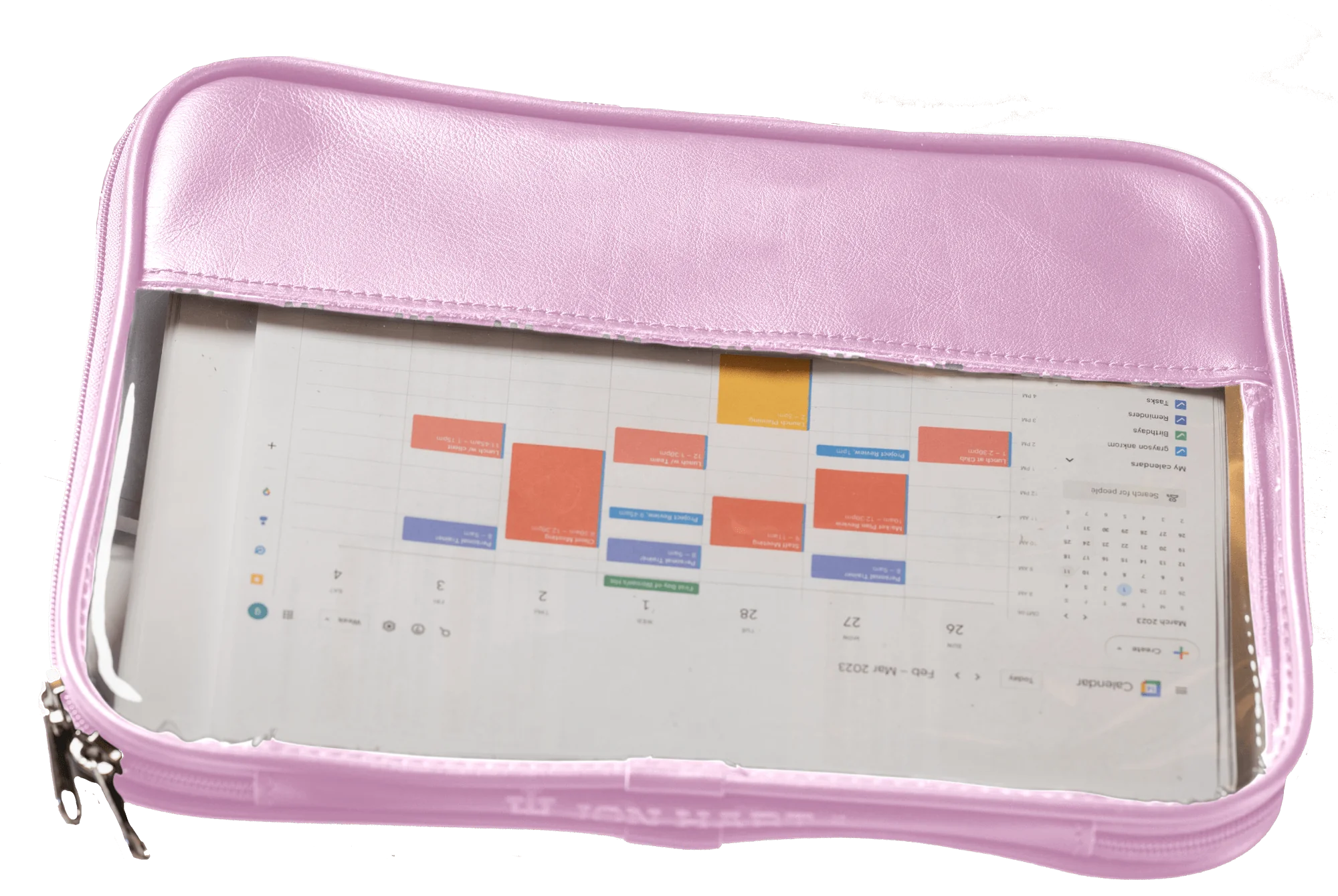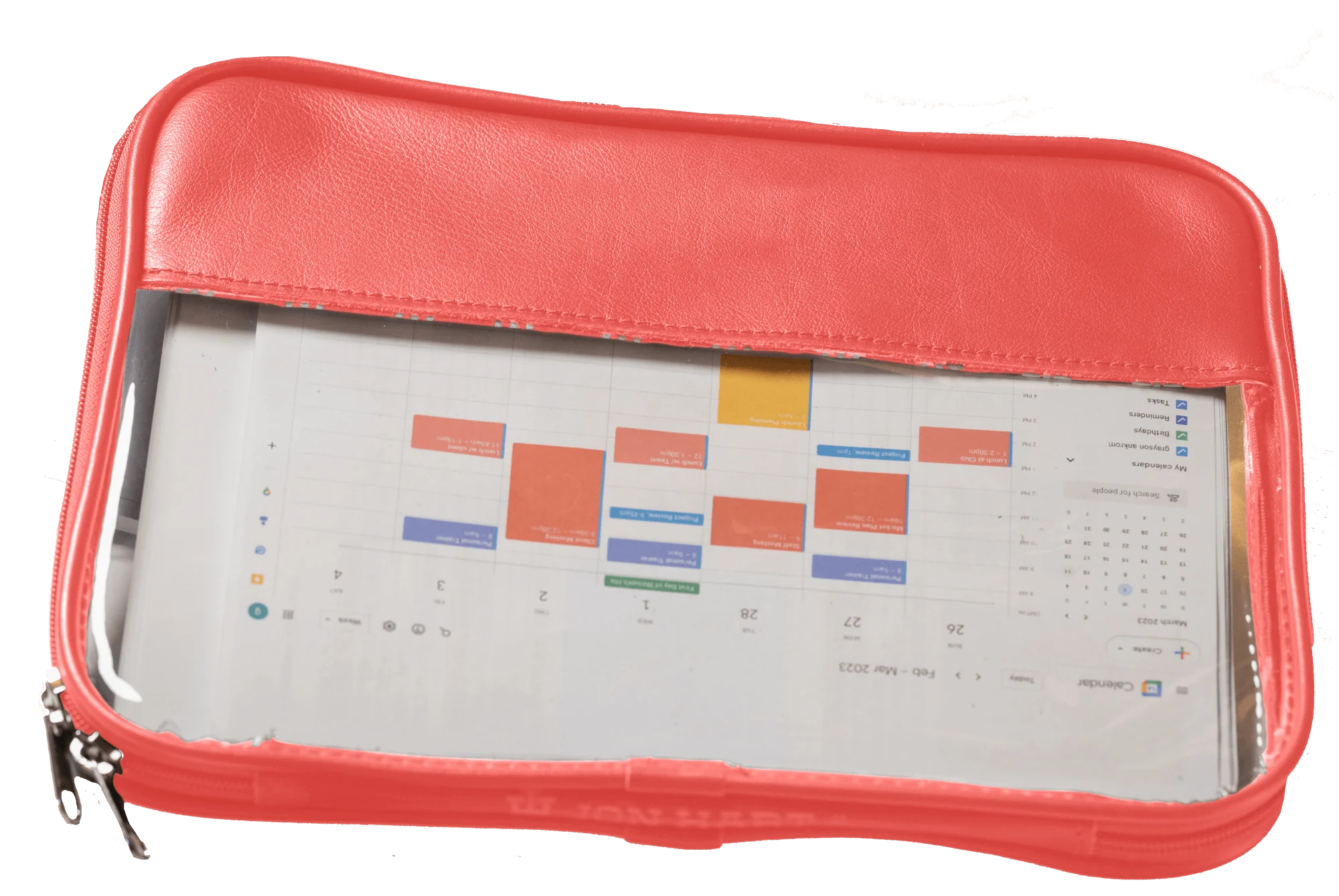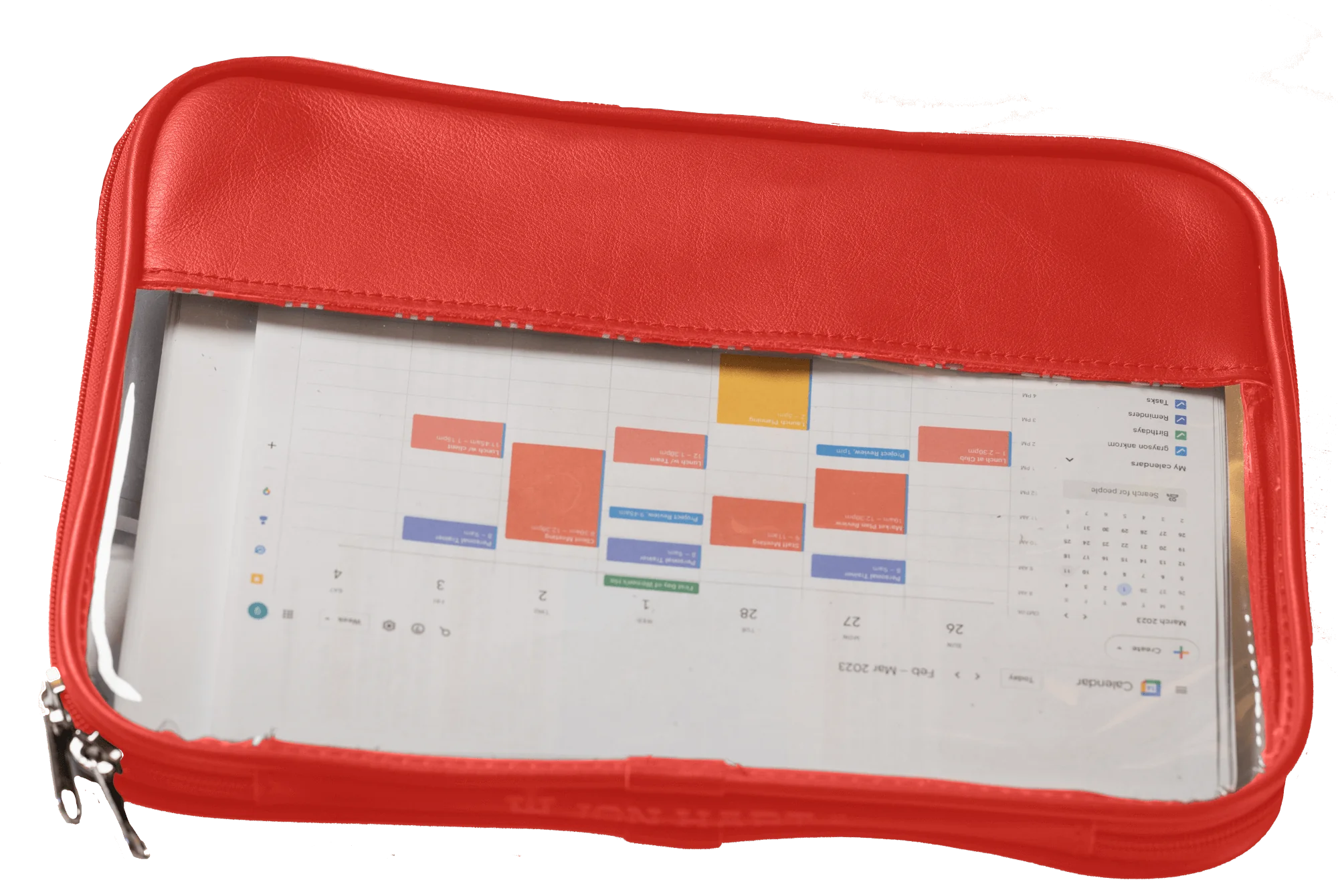 Leave your worries behind & your stress in the folio. The Clear Folio keeps you organized at work, while traveling and even just around the house! It keeps full sized papers, notebooks, important documents and so much more protected and organized. Also comes in Coated Canvas & the JH Cotton Canvas.