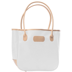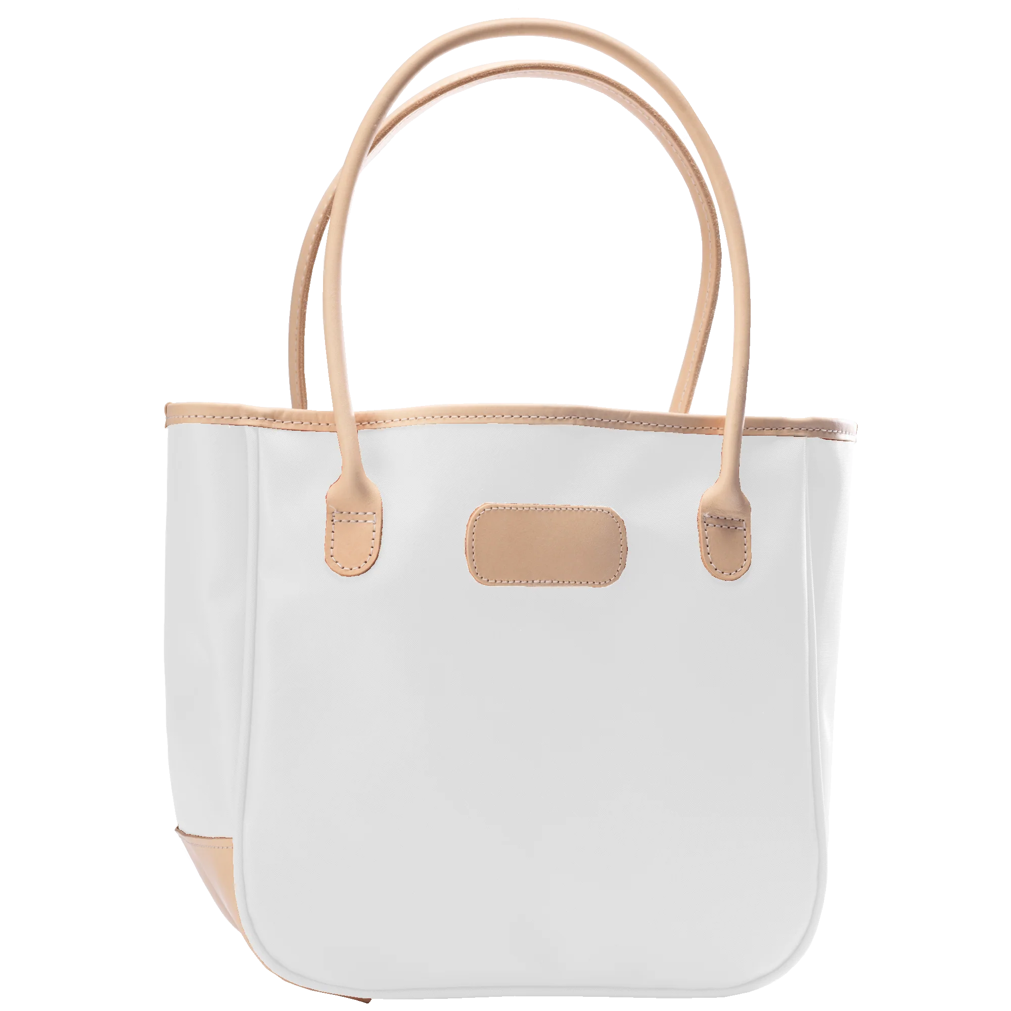 The Jon Hart Medium Holiday Tote is the perfect in-between bag—not too big, not too small, just the right size for daily errands, work, or weekend getaways. Crafted from durable coated canvas with Natural Leather trim, this tote is built to withstand the elements while keeping its timeless Jon Hart look. It features rolled Natural Leather handles for comfortable carrying, a zippered interior pocket for securing essentials, and reinforced Natural Leather corners at the base for added durability. Measuring 12h x 12w x 6.5d inches, it offers ample space without being bulky, making it one of the most versatile bags in the collection. Easy to care for, the coated canvas resists wear and can be cleaned with simple household products, while the high-quality Natural Leather trim requires minimal maintenance. A classic tote built for style, strength, and everyday function.