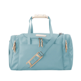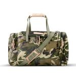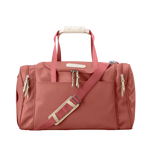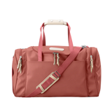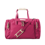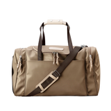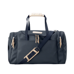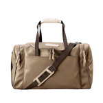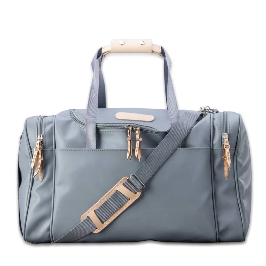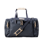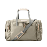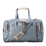 Travel with ease and timeless style with the Jon Hart Medium Square Duffel, the brand’s most popular duffel for good reason. Designed for optimal form and function, this carry-on compliant bag keeps you perfectly organized wherever your journey takes you. Two roomy compartments on each side and a U-shaped top zipper provide quick, convenient access to everything inside. Expertly crafted from durable coated canvas and finished with premium natural leather trim, it’s built to last through years of weekend getaways and business trips. The trolley sleeve on the back slides securely over a rolling suitcase handle, while webbing handles with leather detail and a detachable shoulder strap ensure easy carrying. End pockets are sized to hold the Small Travel Kit for coordinated packing. The Jon Hart Medium Square Duffel combines classic craftsmanship with unbeatable practicality.