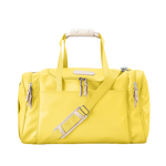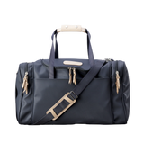 Jon Hart Medium Square Duffel made with coated canvas and natural leather trim