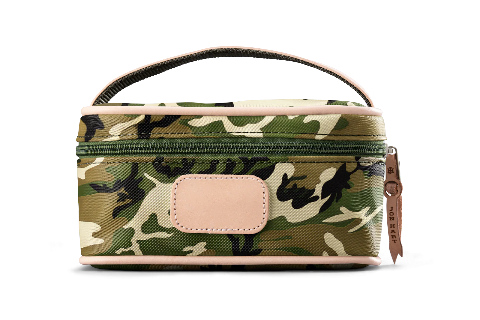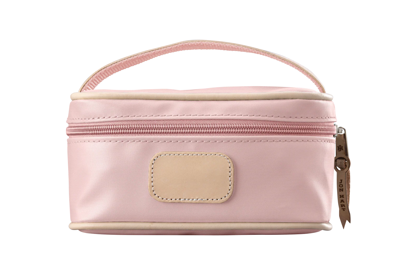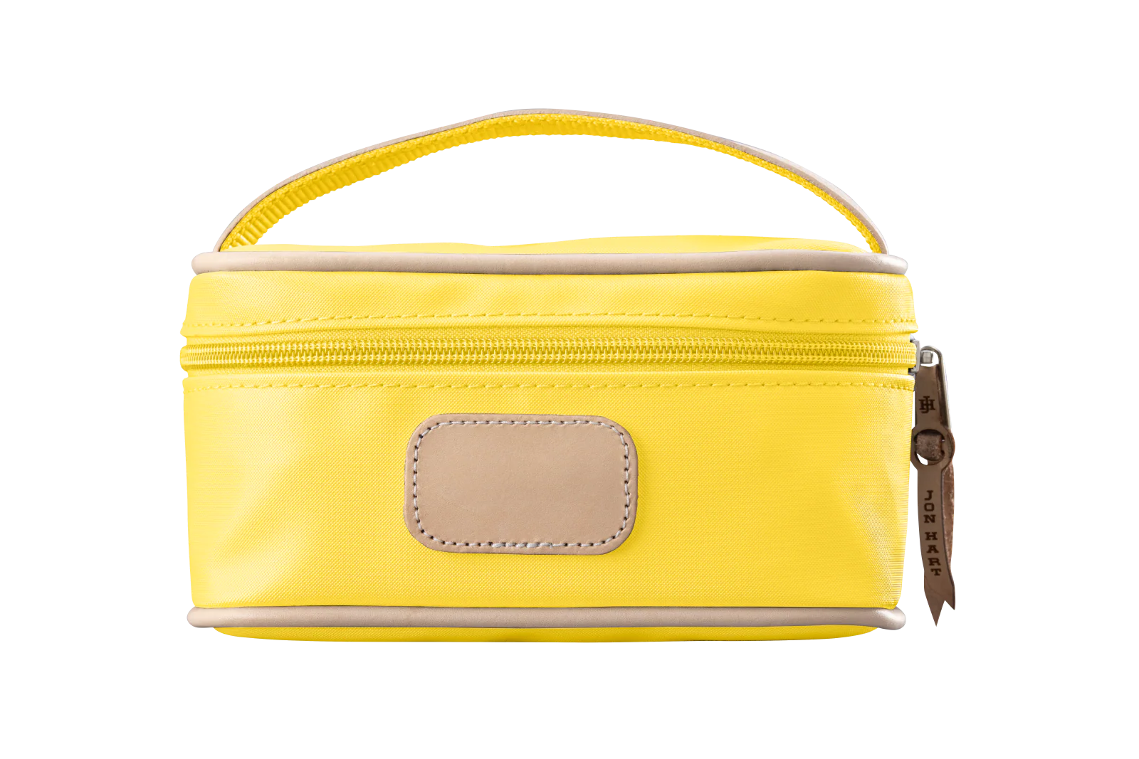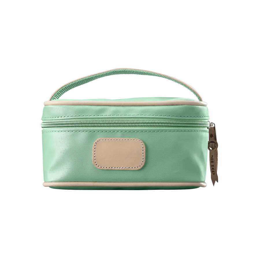 Keep your beauty and travel essentials stylishly organized with the Jon Hart Mini Makeup Bag, a compact companion designed for life on the go. Perfectly sized to hold just the right amount of makeup, medicine, or even a camera lens, this sleek bag delivers both fashion and function. Crafted from durable coated canvas and accented with natural leather trim, it offers timeless appeal and lasting quality. A zippered closure with silver hardware keeps items secure, while an interior pocket keeps small accessories in place. The webbing and natural leather handle make it easy to grab and carry solo or toss into a larger tote or suitcase. Ideal for day trips, weekend getaways, or everyday use, the Jon Hart Mini Makeup Bag makes staying organized effortlessly stylish.