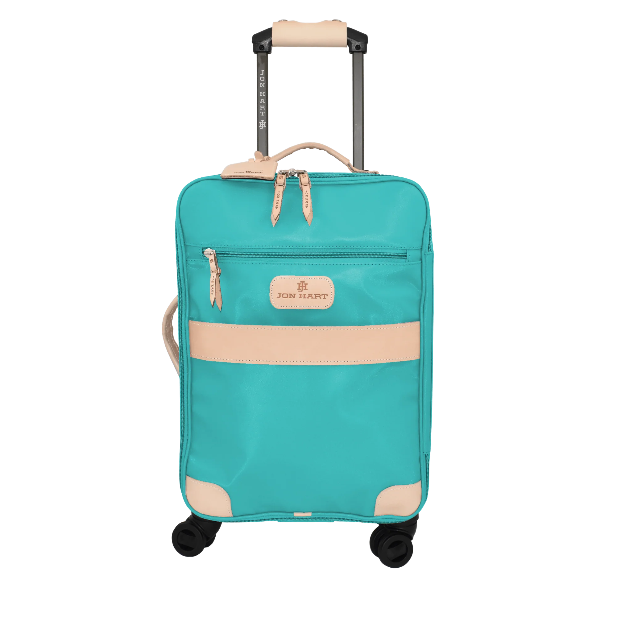 A front zipper pocket and lined sleeve provide quick access to documents, folders, or essentials, helping you stay organized on the move. Lockable zippers keep your belongings secure, while the lightweight PVC honeycomb internal frame adds structure without unnecessary weight. Designed for smooth mobility, the 360° spinner wheels glide effortlessly in any direction, and the retractable comfort-grip handle makes navigating terminals easy. Natural leather top and side handles provide comfortable lifting, and the included luggage tag and handle wrap add a polished finishing touch. Ideal for business or leisure travel, this carry-on blends durability, organization, and signature Jon Hart craftsmanship.