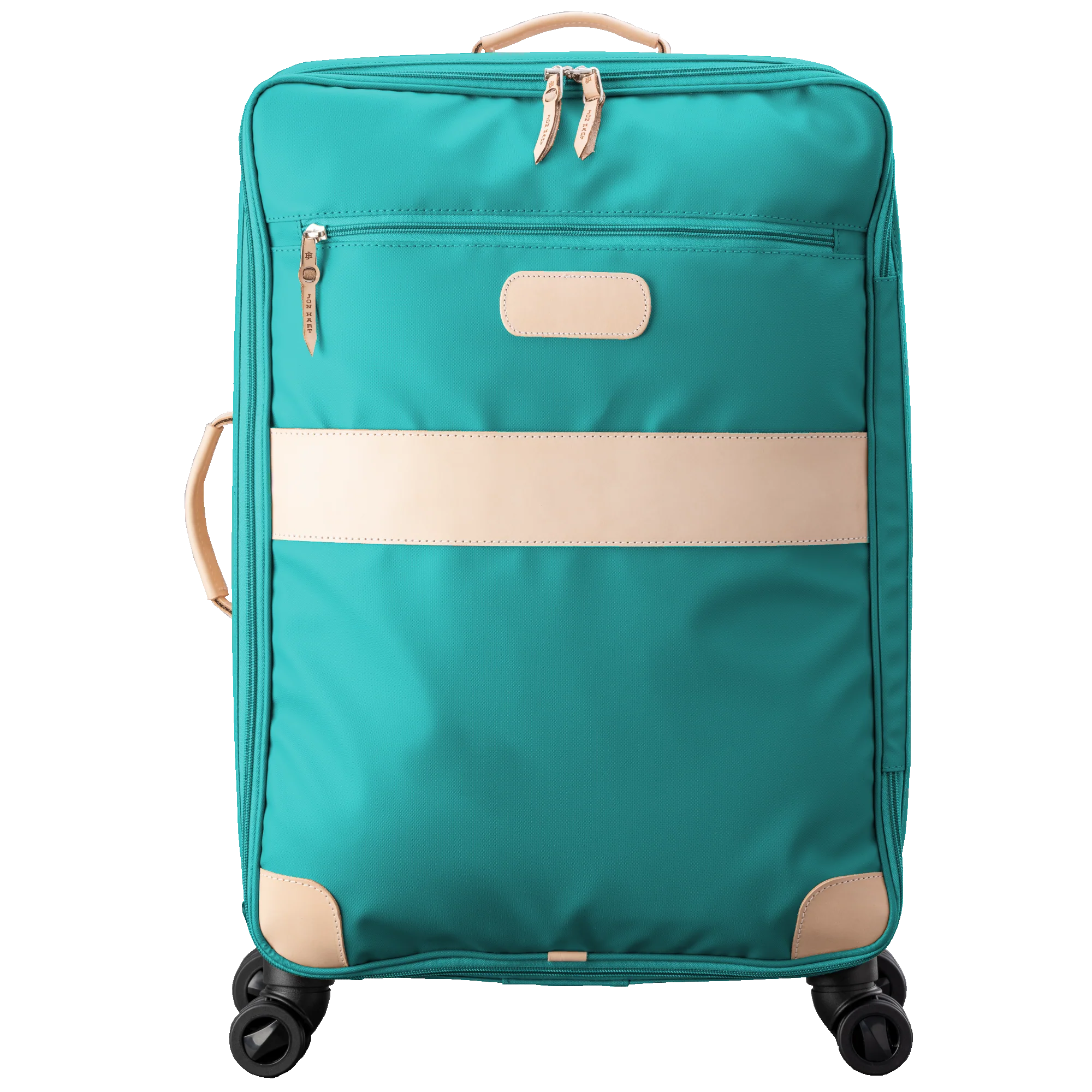 You are truly going places with the Jon Hart 360 Large Wheels + Garment Sleeve, a premium travel companion designed to deliver sophistication, durability, and effortless function. Expertly handcrafted in the USA from signature coated canvas with generous Natural Leather trim, this luggage piece offers timeless style built to last through years of travel.