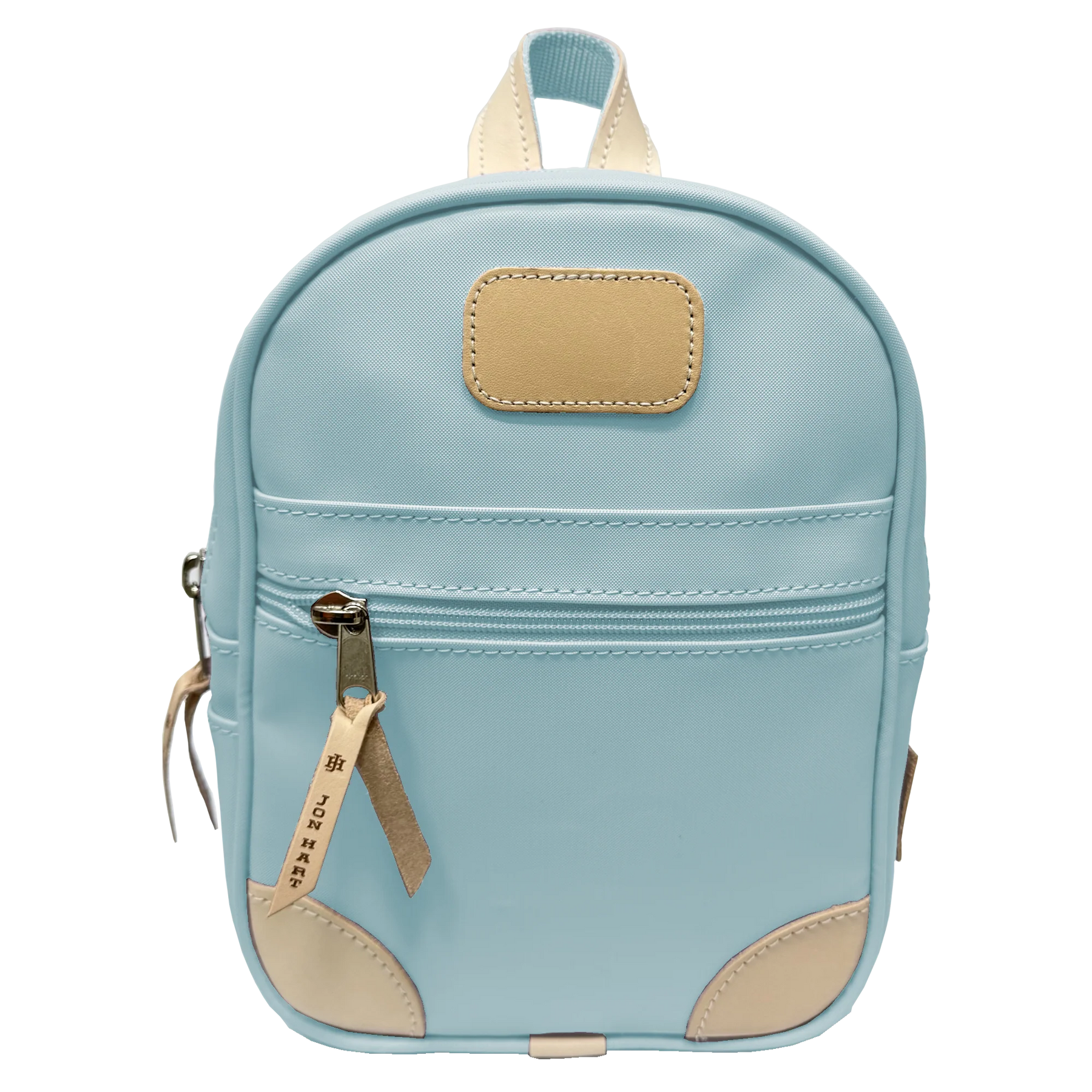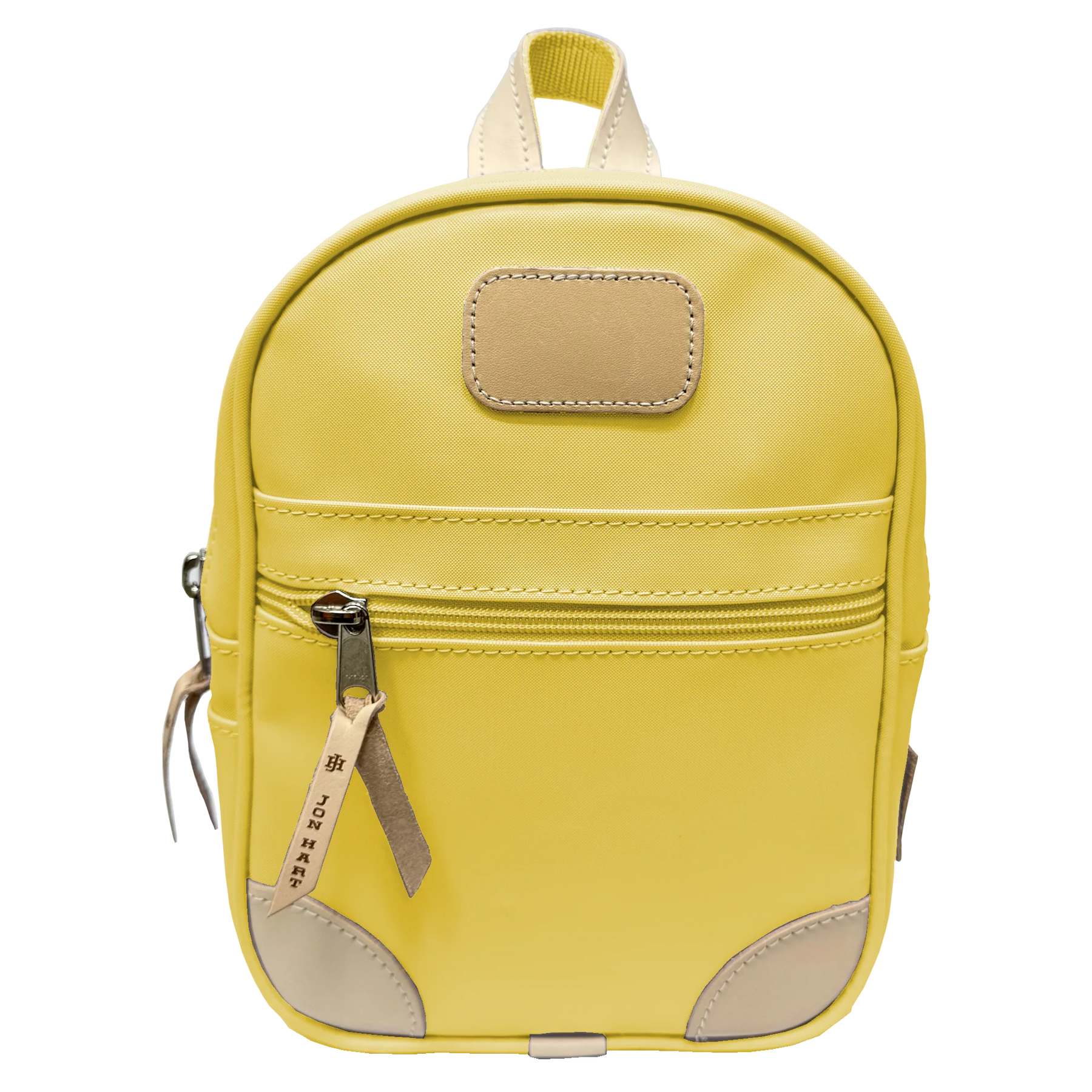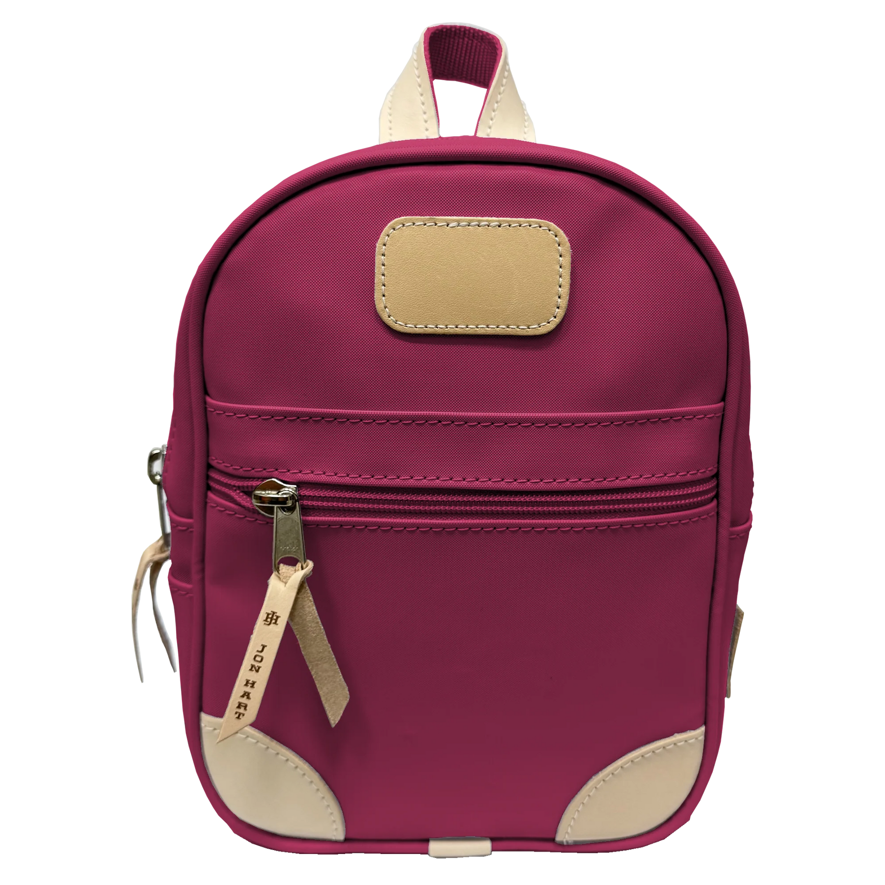 Designed with children in mind, this compact backpack is ideal for carrying just the essentials—keeping the load light so parents don’t end up holding it. Crafted from durable coated canvas with Natural Leather trim, it offers long-lasting style with a classic Jon Hart look. The zippered main compartment with silver hardware securely stores items, while the front zippered pocket provides easy access for smaller accessories. Adjustable webbing straps ensure a comfortable fit, and a sturdy webbing loop makes it easy to hang. Reinforced Natural Leather corners add extra durability. Measuring 11.5h x 9w x 3.75d inches, it’s lightweight, stylish, and functional for little travelers.