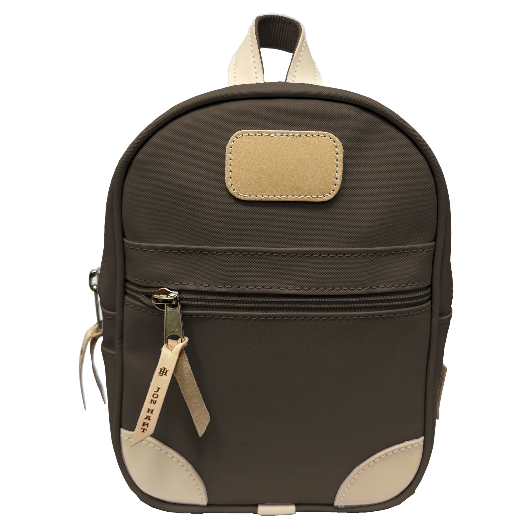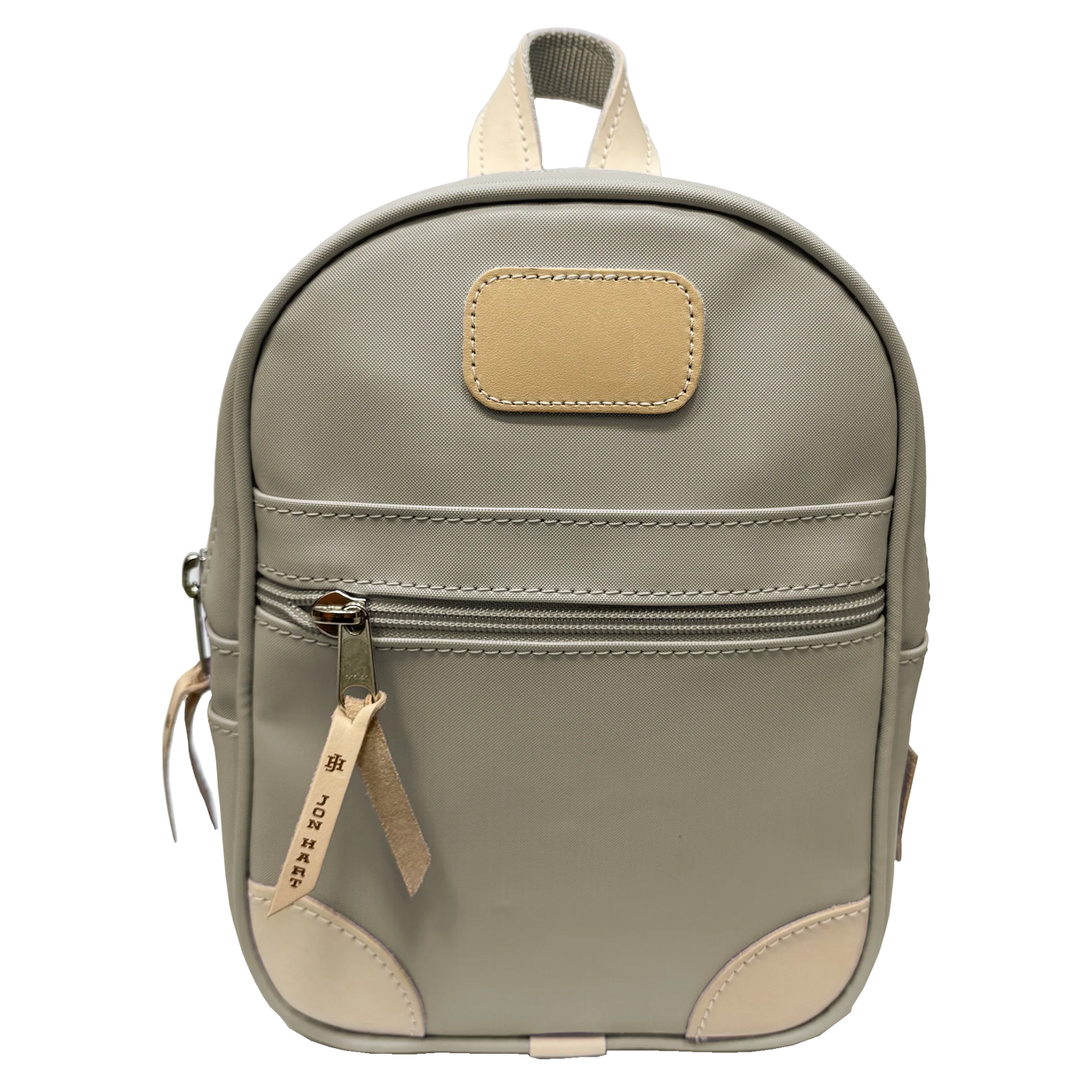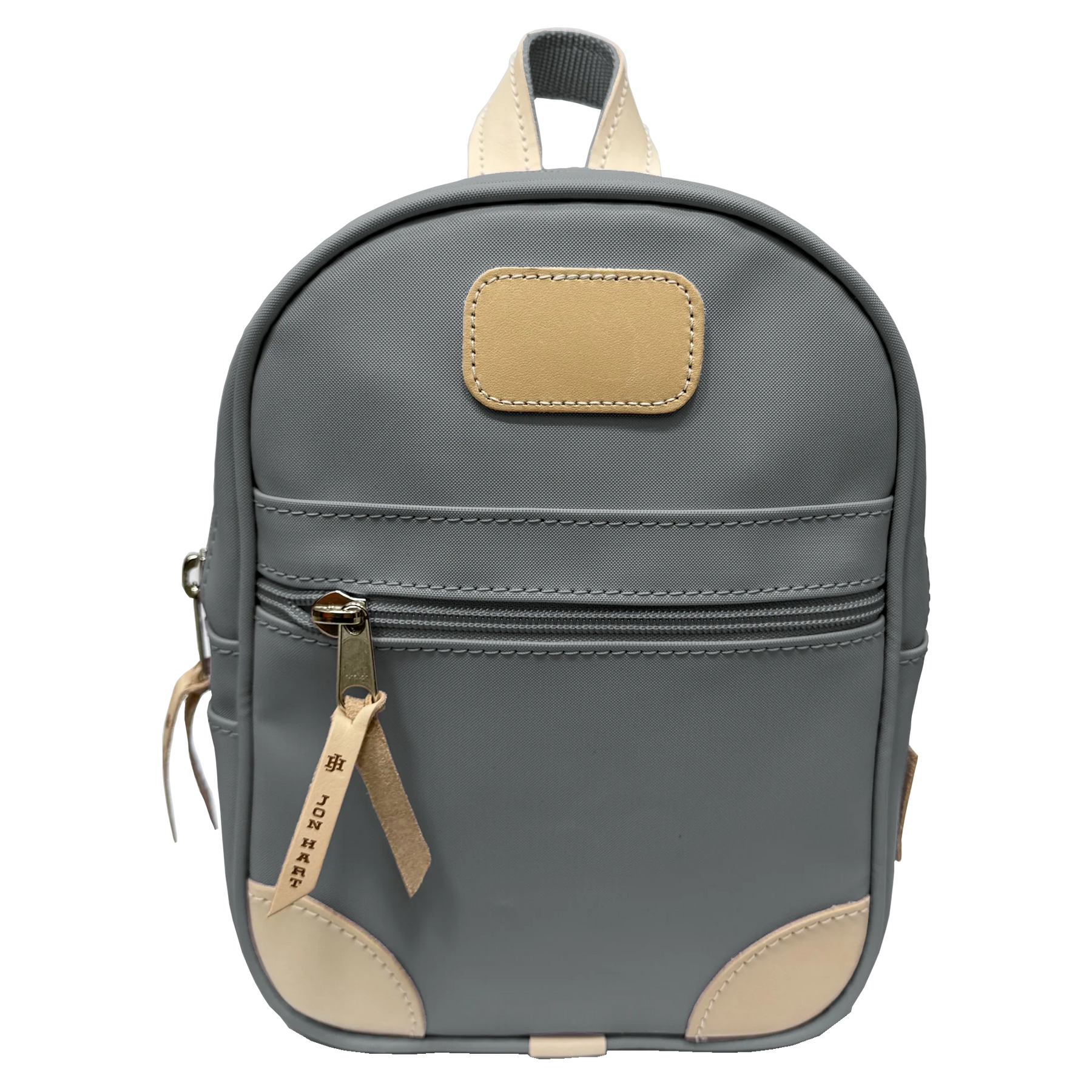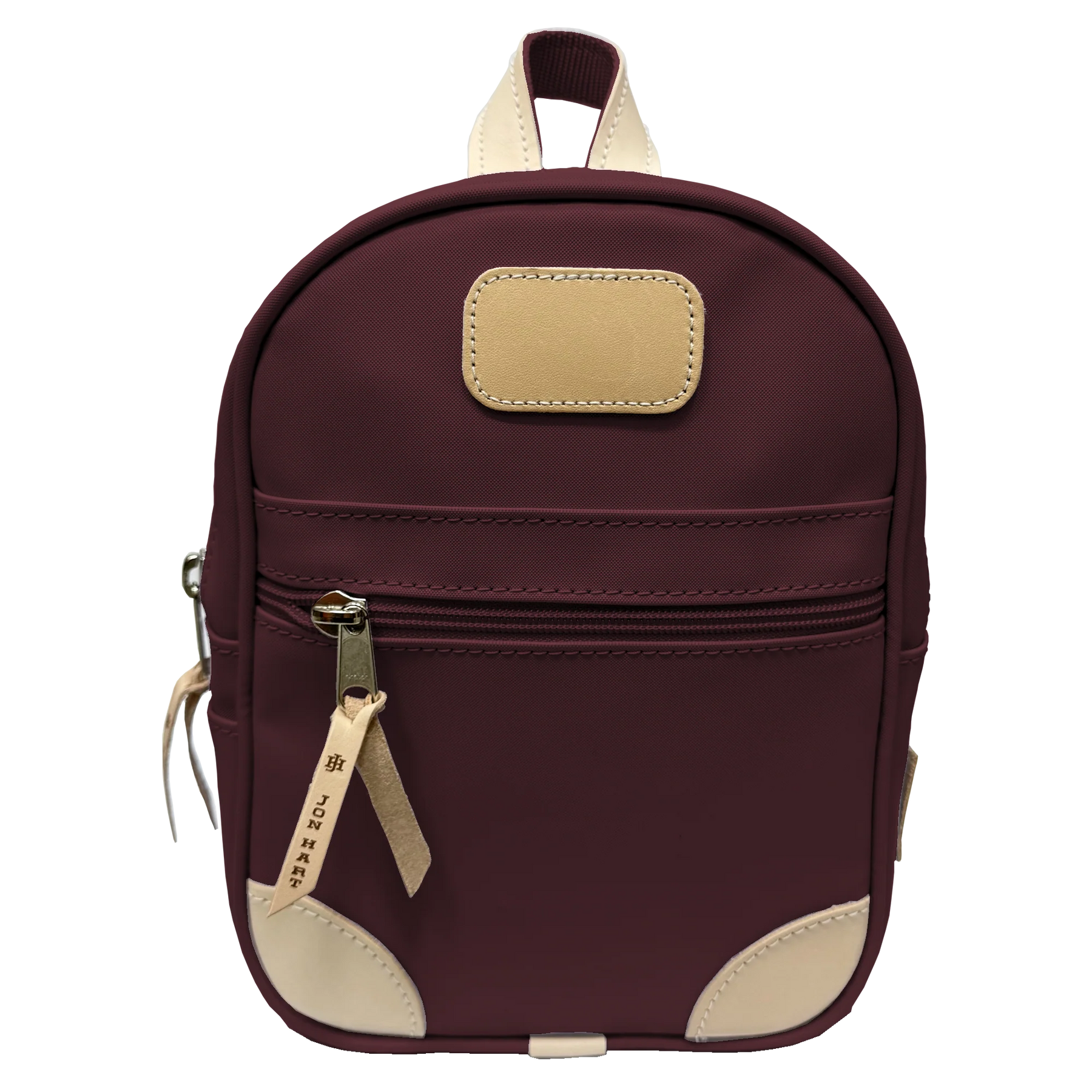 Designed with children in mind, this compact backpack is ideal for carrying just the essentials—keeping the load light so parents don’t end up holding it. Crafted from durable coated canvas with Natural Leather trim, it offers long-lasting style with a classic Jon Hart look. The zippered main compartment with silver hardware securely stores items, while the front zippered pocket provides easy access for smaller accessories. Adjustable webbing straps ensure a comfortable fit, and a sturdy webbing loop makes it easy to hang. Reinforced Natural Leather corners add extra durability. Measuring 11.5h x 9w x 3.75d inches, it’s lightweight, stylish, and functional for little travelers.