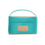 Keep your beauty and travel essentials stylishly organized with the Jon Hart Mini Makeup Bag, a compact companion designed for life on the go. Perfectly sized to hold just the right amount of makeup, medicine, or even a camera lens, this sleek bag delivers both fashion and function. Crafted from durable coated canvas and accented with natural leather trim, it offers timeless appeal and lasting quality. A zippered closure with silver hardware keeps items secure, while an interior pocket keeps small accessories in place. The webbing and natural leather handle make it easy to grab and carry solo or toss into a larger tote or suitcase. Ideal for day trips, weekend getaways, or everyday use, the Jon Hart Mini Makeup Bag makes staying organized effortlessly stylish.