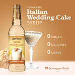 Indulge guilt-free with Jordan's Skinny Mixes Sugar Free Italian Wedding Cake Syrup. Enjoy the velvety flavor of traditional Italian wedding cake without any sugar, calories, or carbs. Immerse yourself in almond, vanilla, and citrus notes, topped with a luscious buttercream frosting. Elevate your coffee, protein shake, or dessert martini with this irresistible syrup.