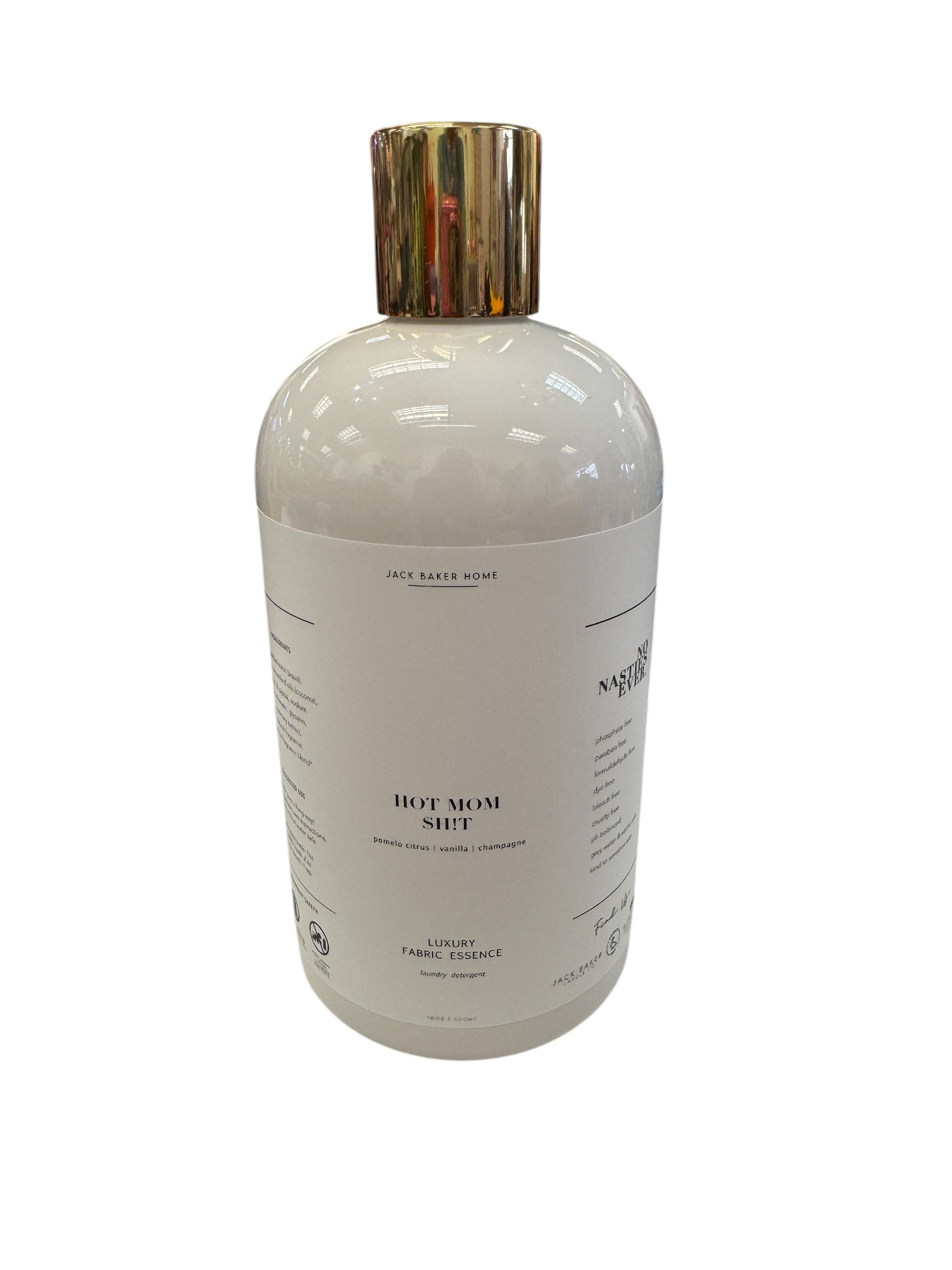 Introducing Jack Baker's Hot Mom Sh*t Small Laundry Detergent: the perfect blend of champagne and pomelo citrus scents. Say goodbye to harsh chemicals and hello to a PH balanced, cruelty-free formula that's gentle on sensitive skin and safe for the environment. Made in Texas by a veteran-owned company. No nasties, just clean clothes!